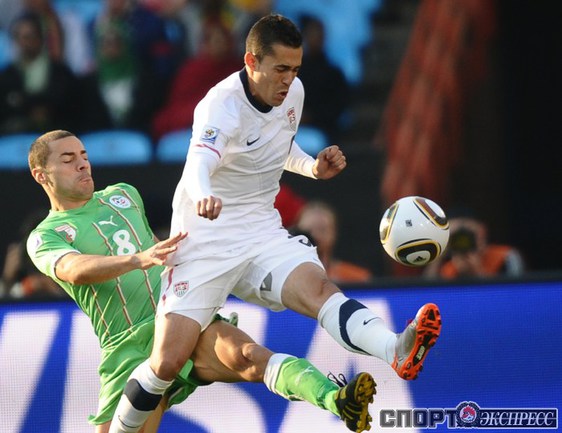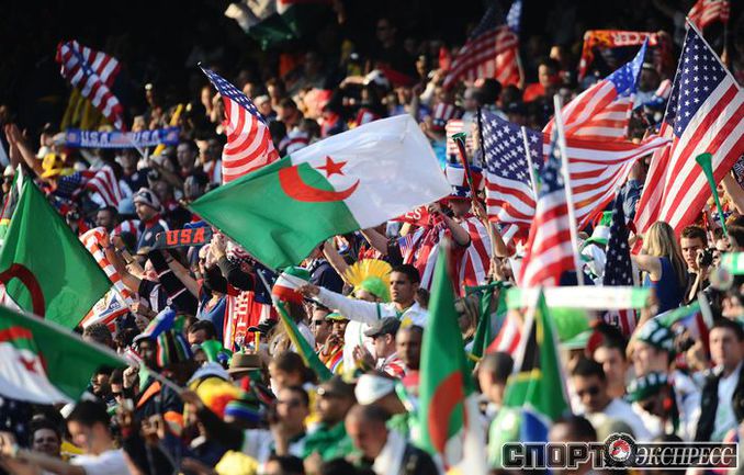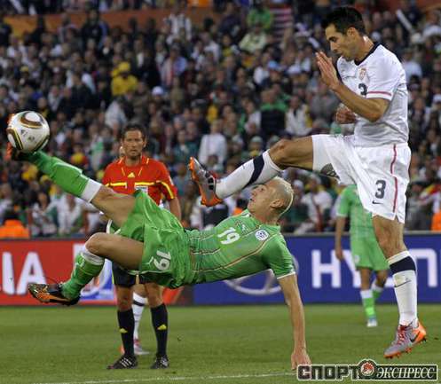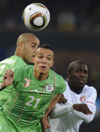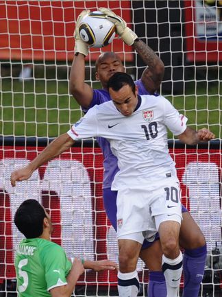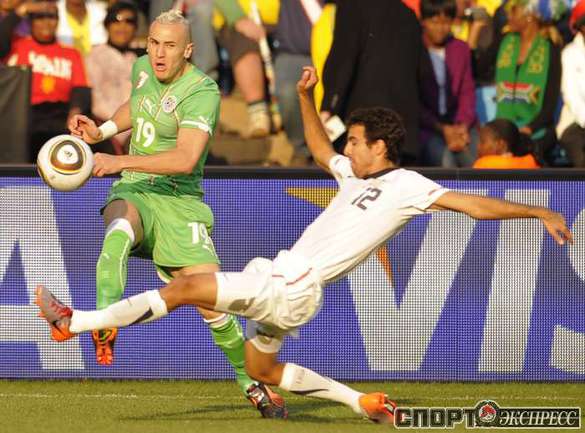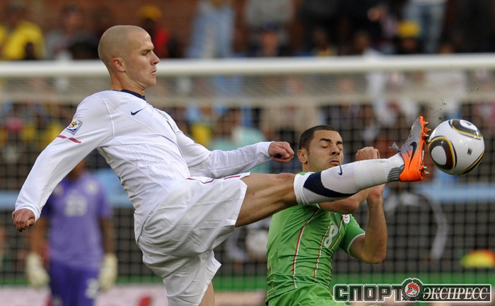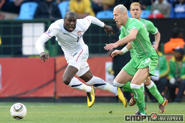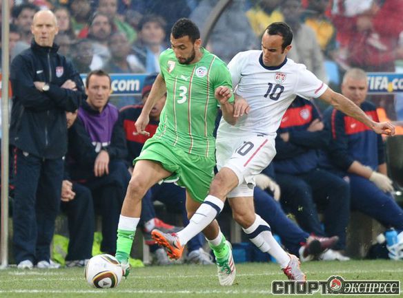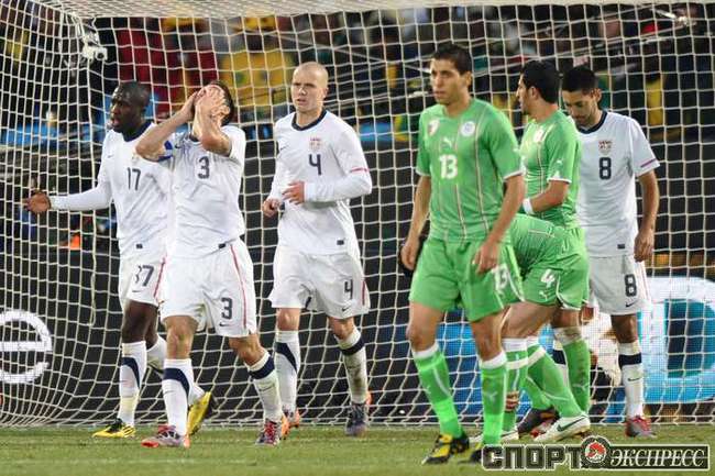 Чемпионат мира по футболу в ЮАР. Стадион "Лофтус Версфельд". 3-й тур. Группа С. США - Алжир - 1:0 (0:0). Гол: Донован, 90+1. Гол Лэндона Донована в компенсированное время матча вывел США в 1/8 финала и лишил плей-офф словенцев. Фото AFP