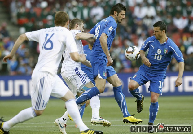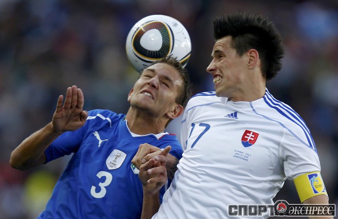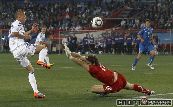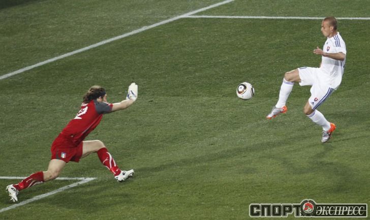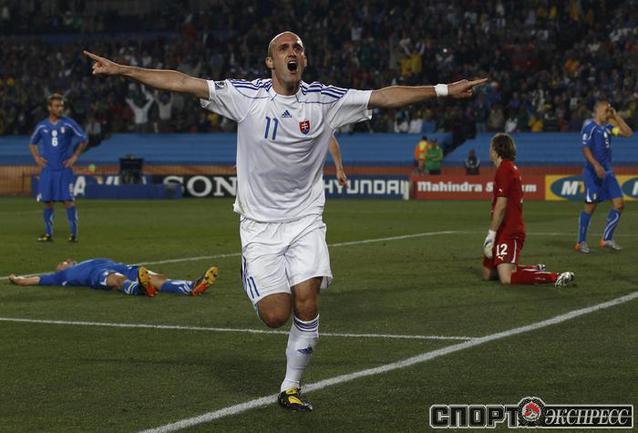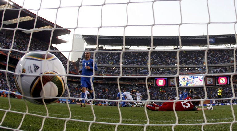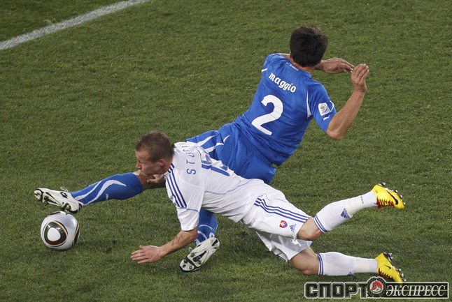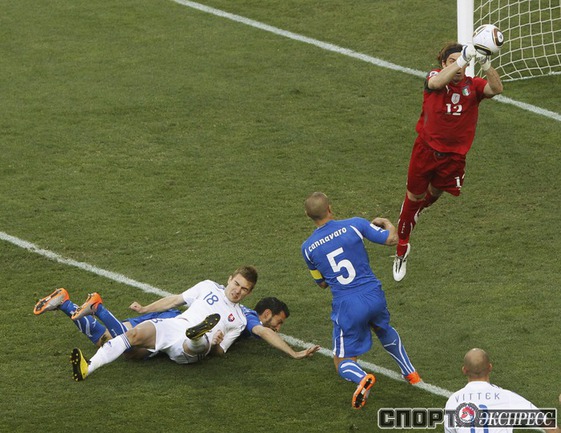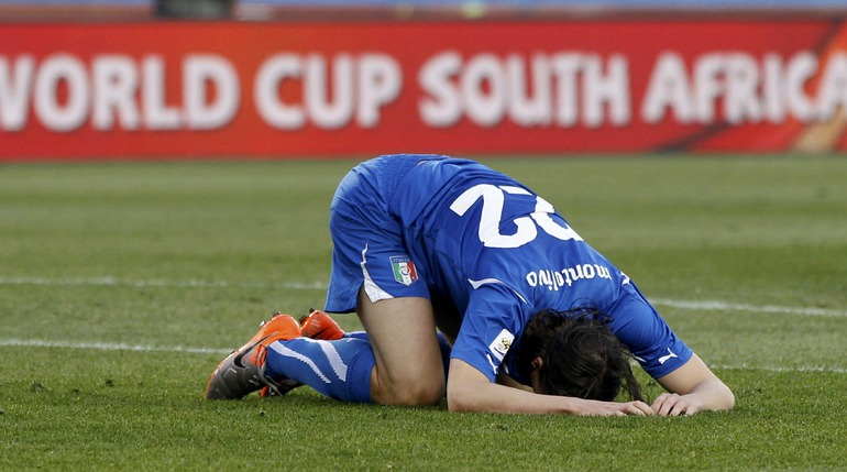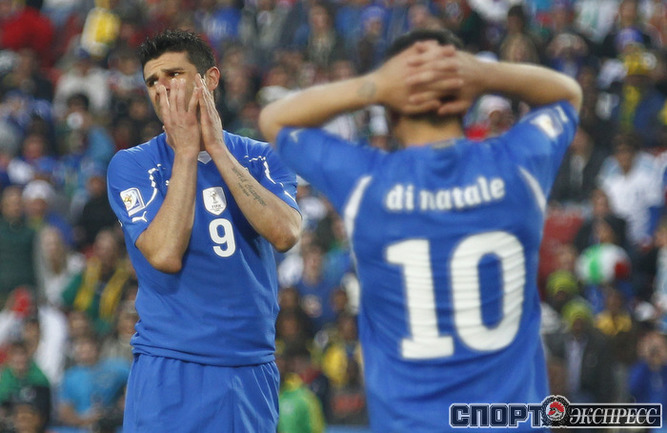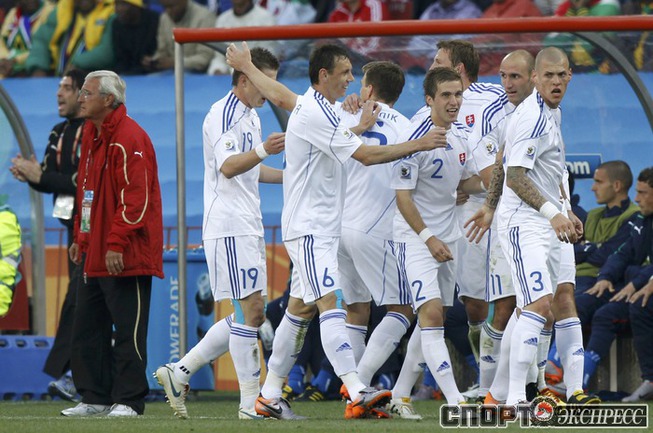 Чемпионат мира по футболу в ЮАР. Групповой турнир. 3-й тур. Группа F. Словакия – Италия – 3:2 (1:0). Голы: Виттек, 25 (1:0). Виттек, 73 (2:0). Ди Натале, 81 (2:1). Копунек, 89 (3:1). Квальярелла, 90+2 (3:2). Итальянцы сложили с себя чемпионские полномочия, заняв последнее место в своей группе. Фото REUTERS