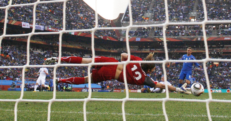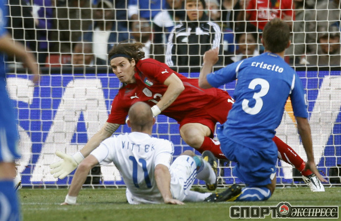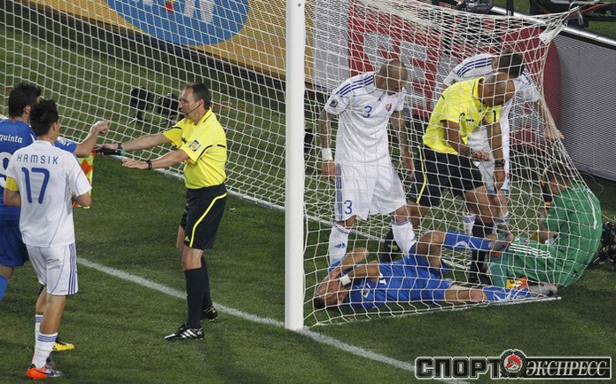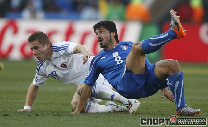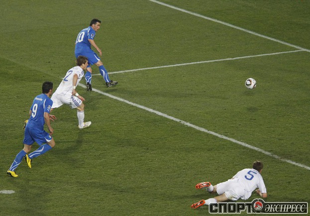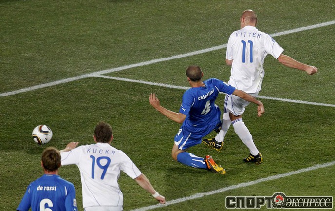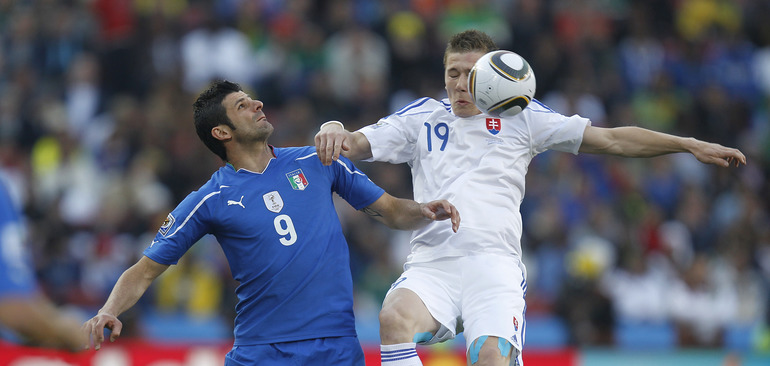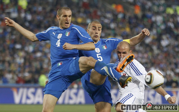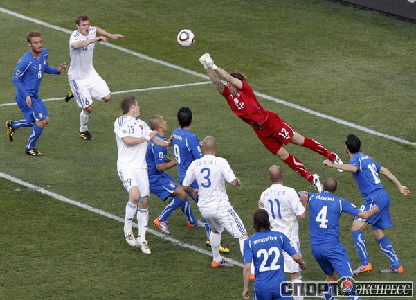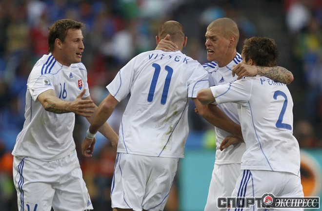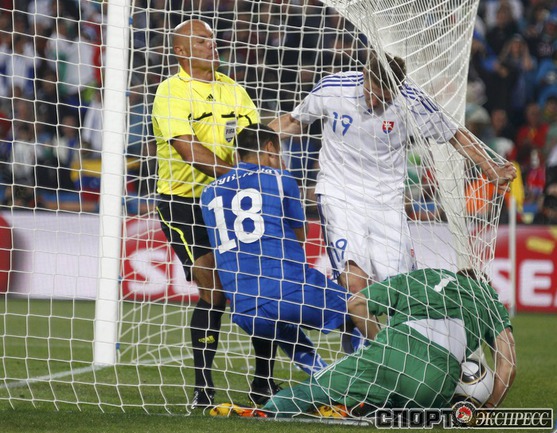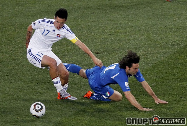 Чемпионат мира по футболу в ЮАР. Групповой турнир. 3-й тур. Группа F. Словакия – Италия – 3:2 (1:0). Голы: Виттек, 25 (1:0). Виттек, 73 (2:0). Ди Натале, 81 (2:1). Копунек, 89 (3:1). Квальярелла, 90+2 (3:2). Итальянцы сложили с себя чемпионские полномочия, заняв последнее место в своей группе. Фото REUTERS