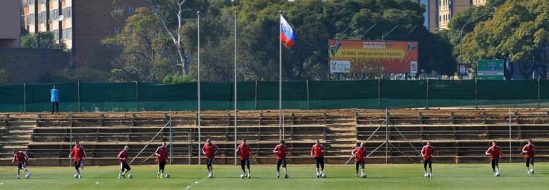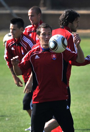 Чемпионат мира по футболу в ЮАР. Тренировка сборной Словакии перед поединком 1/8 финала против сборной Голландии. Фото AFP