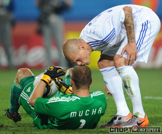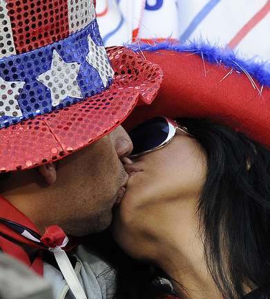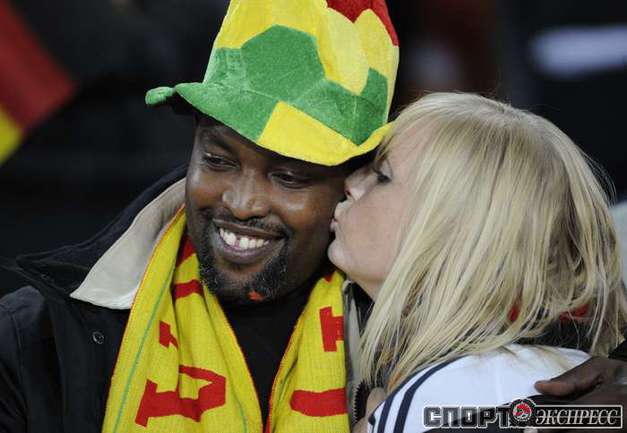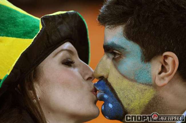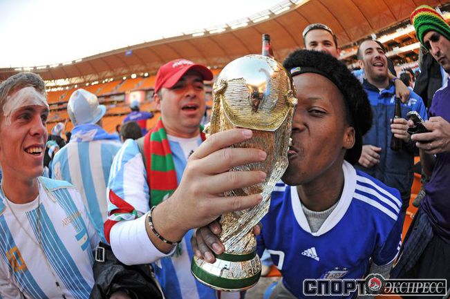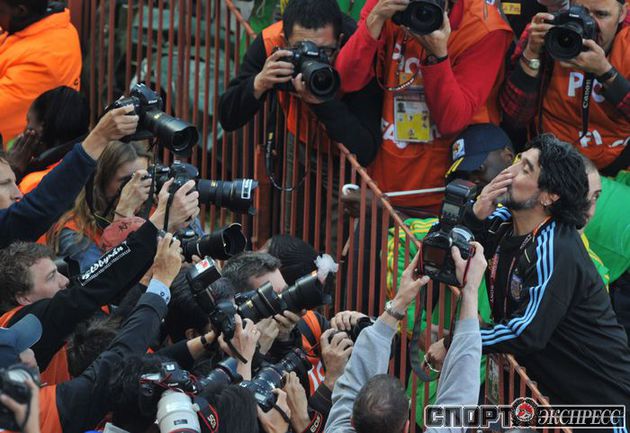 Поцелуев на чемпионате мира в ЮАР хватает! Целуют девушек, копию Кубка мира, партнеров по команде, тренеров, а Марадона неизменно посылает воздушный поцелуй болельщикам сборной Aргентины. Фото AFP