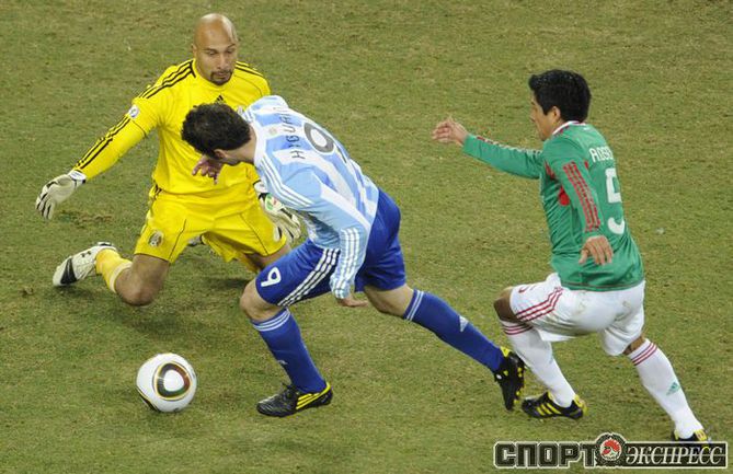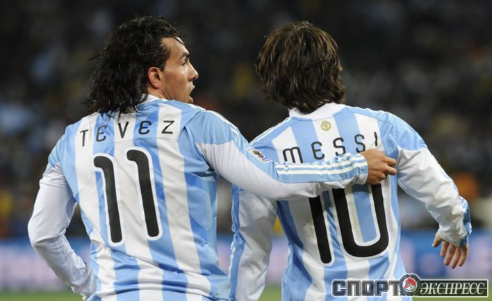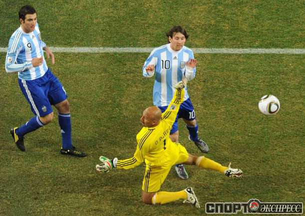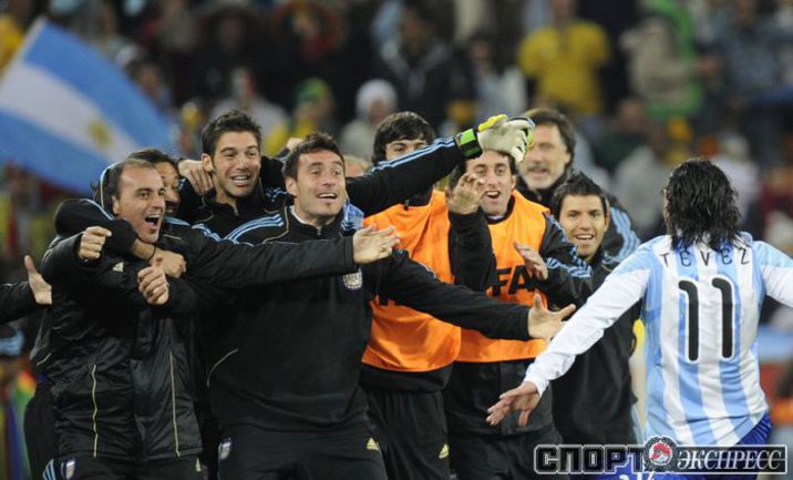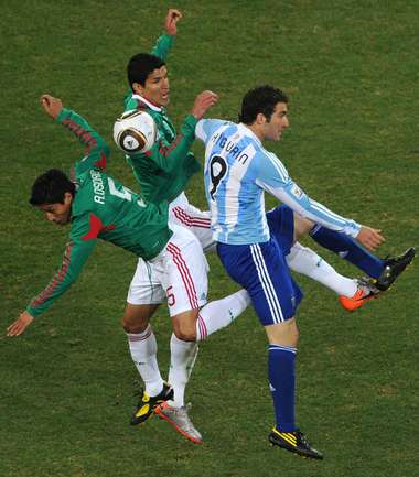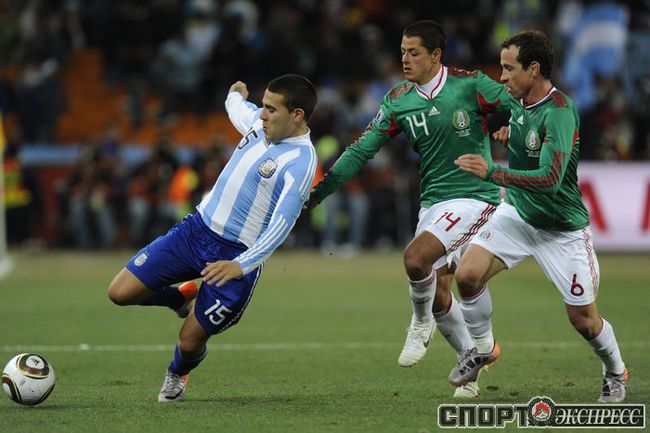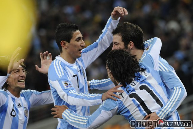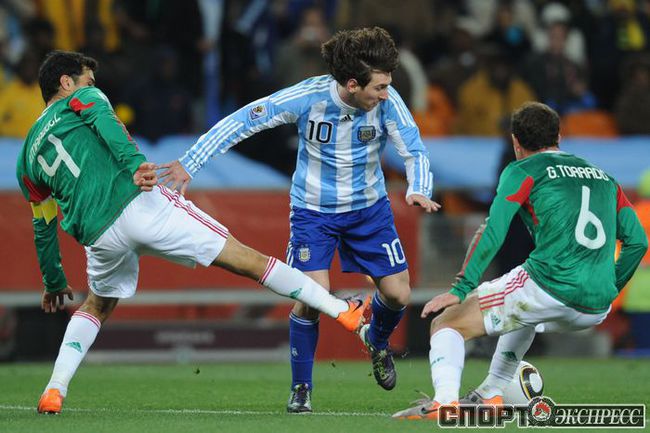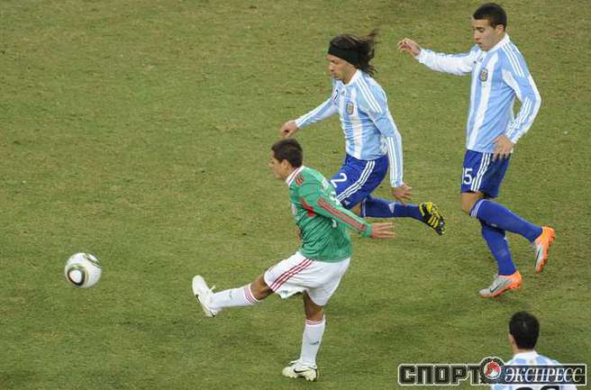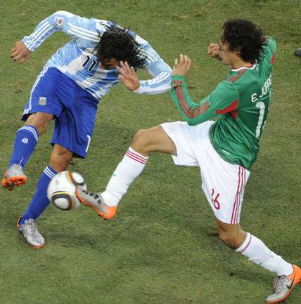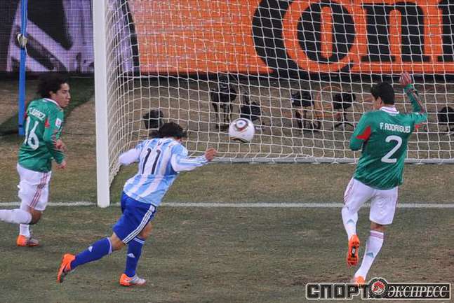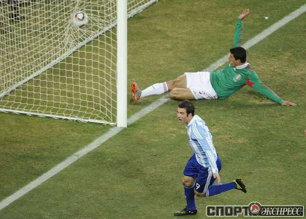 27.06.2010. ЮАР. "Soccer City", Йоханнесбург. 1/8 финала. Аргентина - Мексика - 3:1 (2:0). 26' Тевес; 33' Игуаин; 52' Тевес; 71' Эрнандес Х. Фото AFP