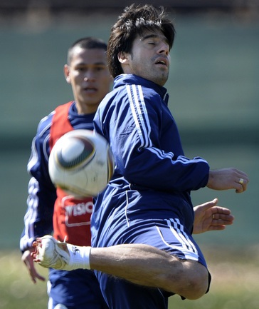 Чемпионат мира по футболу в ЮАР. Тренировки сборных Японии и Парагвая накануне матча 1/8 финала. Фото AFP