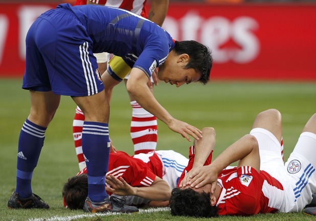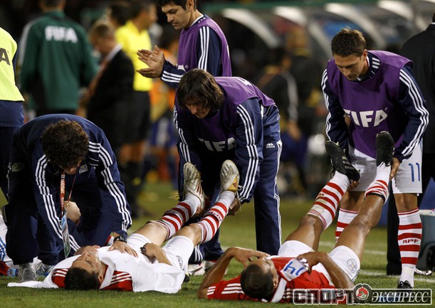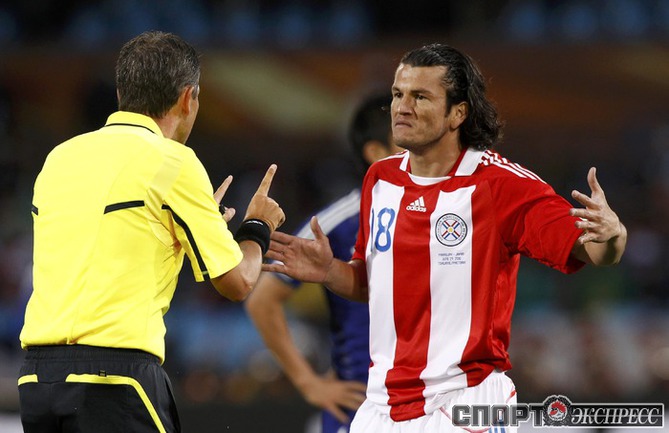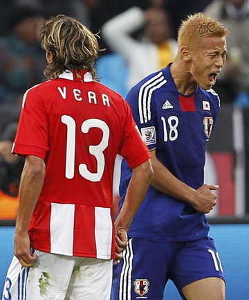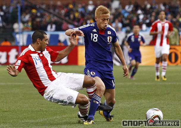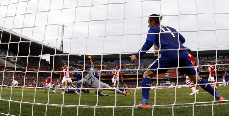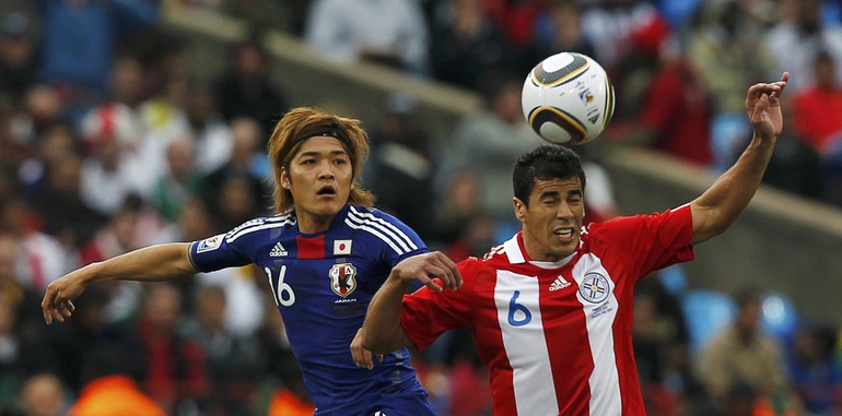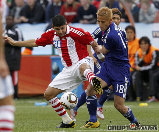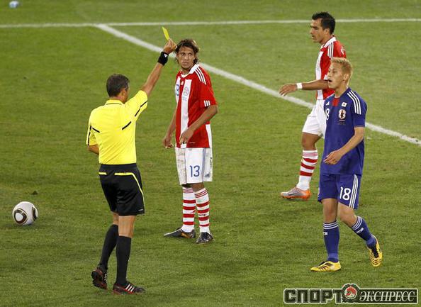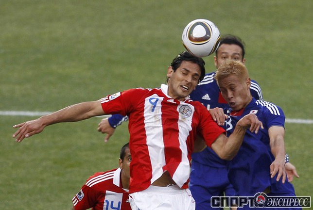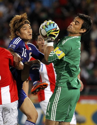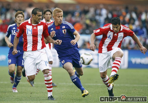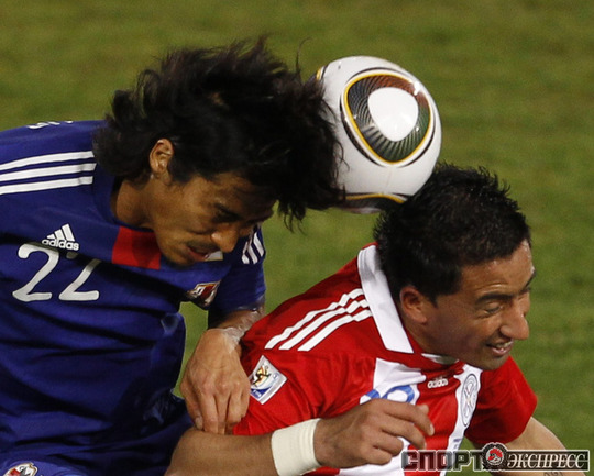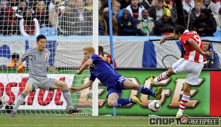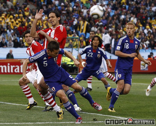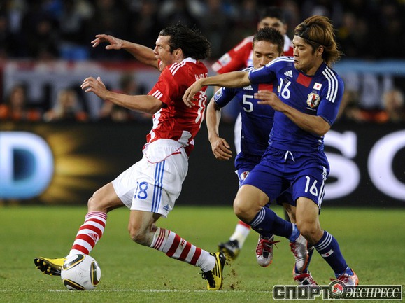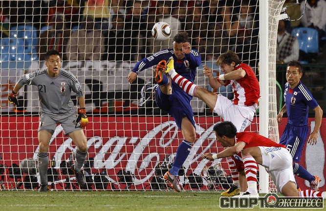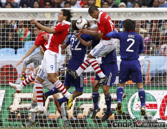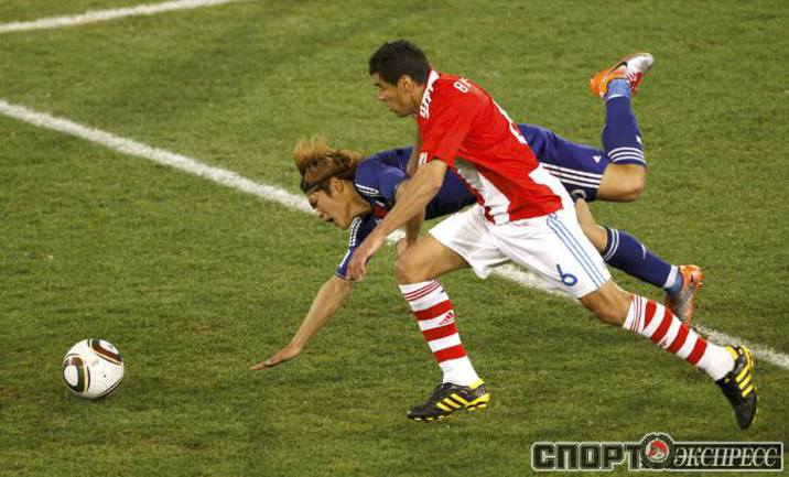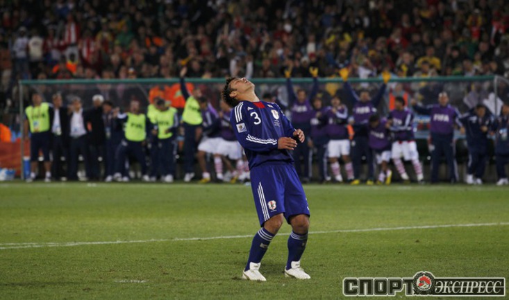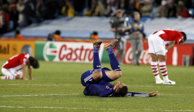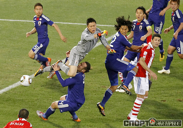 Чемпионат мира по футболу в ЮАР. Претория. 1/8 финала. Парагвай – Япония – 0:0. Пенальти - 5:3. Серия пенальти: Э.Баррето - 1:0. Эндо - 1:1. Барриос - 2:1. Хасебе - 2:2. Риверос - 3:2. Комано - 3:2 (перекладина). Вальдес - 4:2. Хонда - 4:3. Кардосо - 5:3. Фото REUTERS