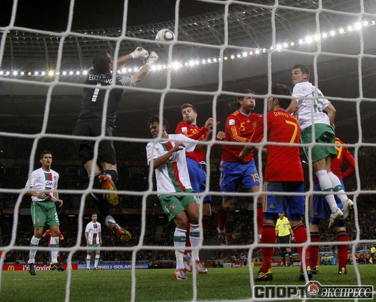 Чемпионат мира по футболу в ЮАР. 1/8 финала. Кейптаун. Стадион "Грин Пойнт". Испания - Португалия - 1:0 (0:0). Гол: Вилья, 63. Фото REUTERS