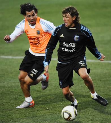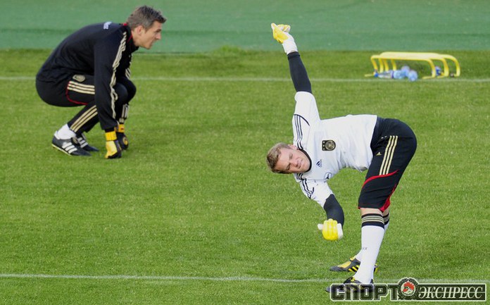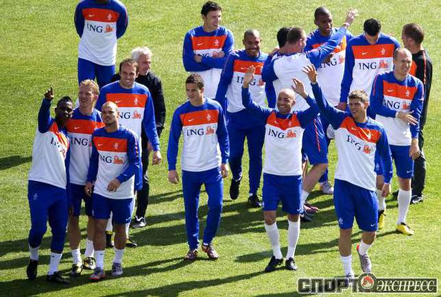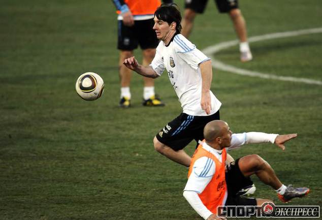 Чемпионат мира по футболу в ЮАР. Сборные Германии, Аргентины, Голландии и Бразилии на тренировке перед матчами 1/4 финала ЧМ-2010. Фото AFP