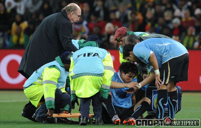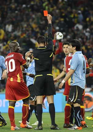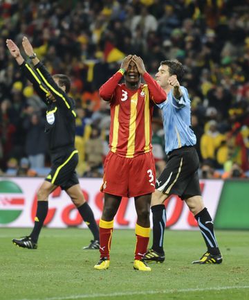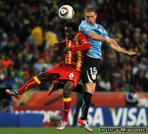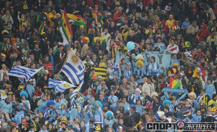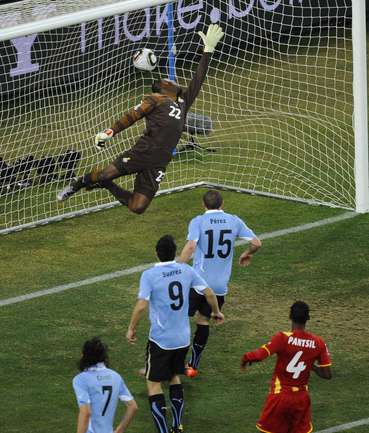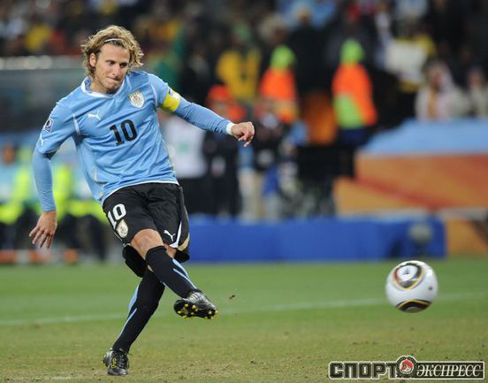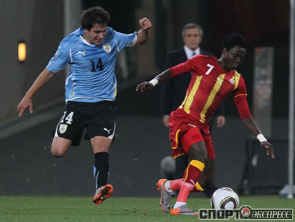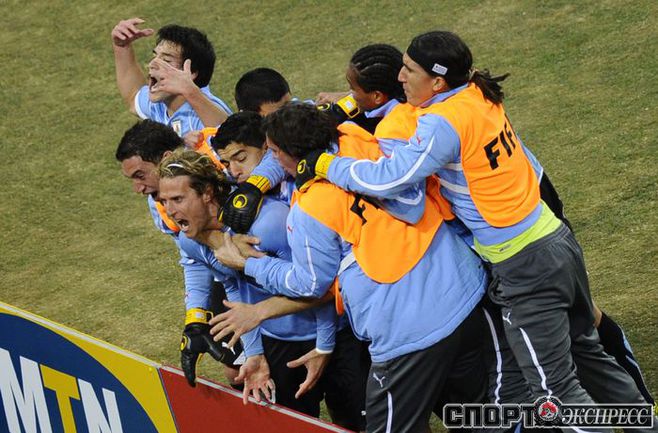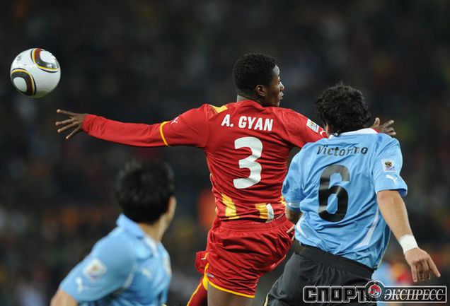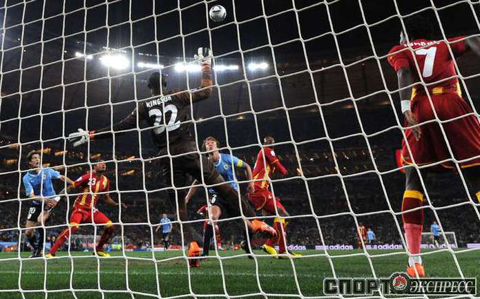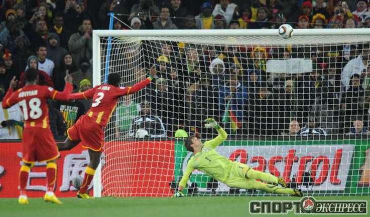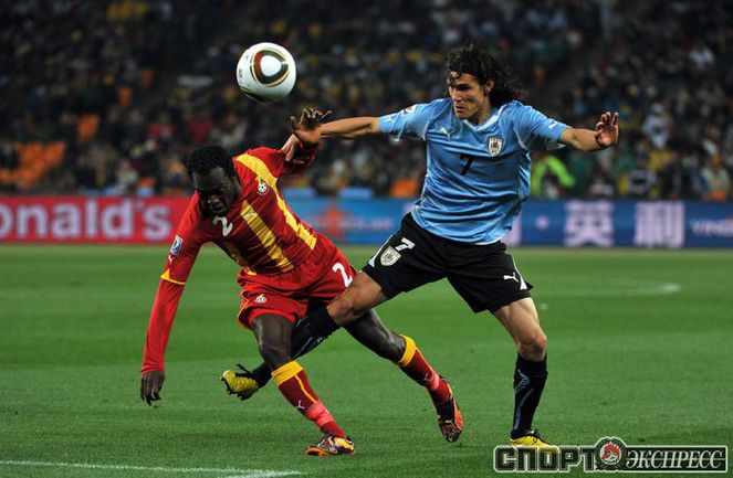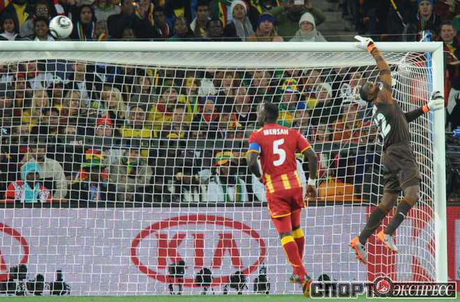 2 июля 2010 года. ЧМ-2010. ЮАР. Йоханнесбург. 1/4 финала. Уругвай - Гана - 1:1, пен. - 4:2. Голы: Мунтари, 45+2 (0:1). Форлан, 55 (1:1). Нереализованный пенальти: Гьян, 120+2 (перекладина). Серия пенальти: Форлан - 1:0. Гьян - 1:1. Викторино - 2:1. Аппиа - 2:2. Скотти - 3:2. Менса - 3:2 (вратарь). Макси Перейра - 3:2 (мимо). Адийя - 3:2 (вратарь). Абреу - 4:2. Фото AFP