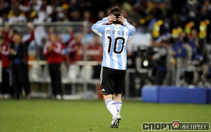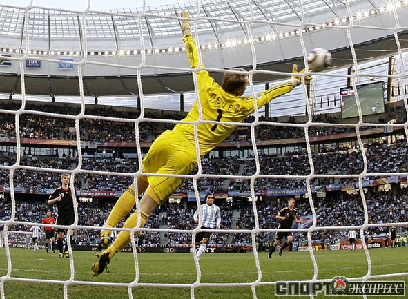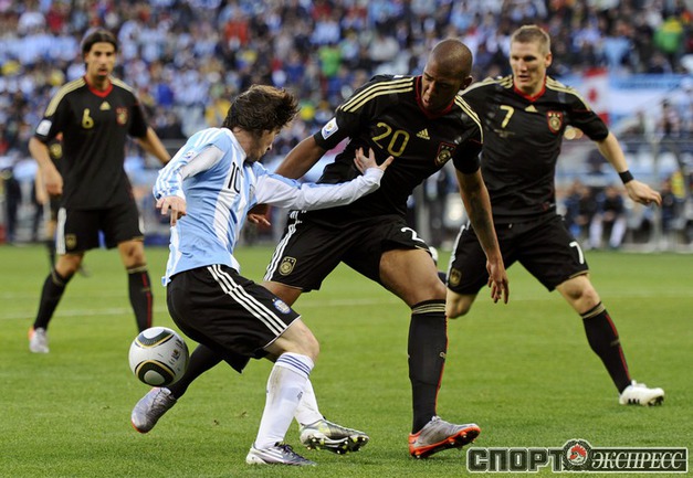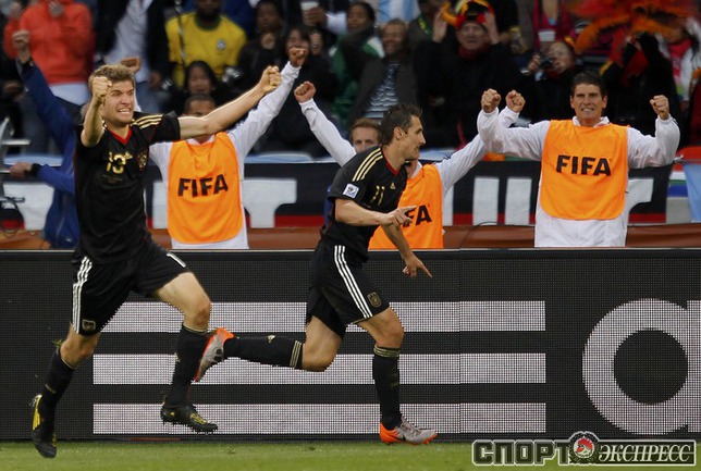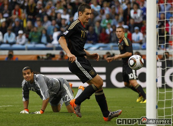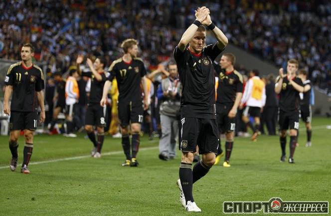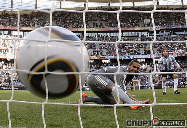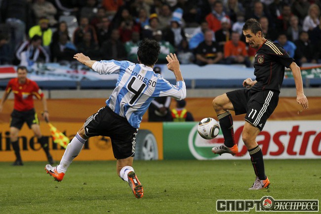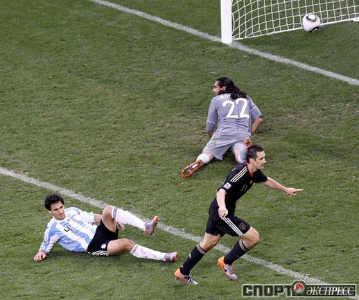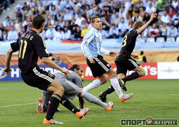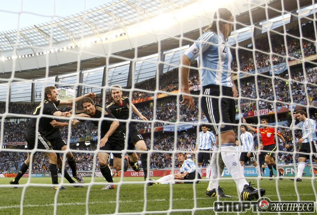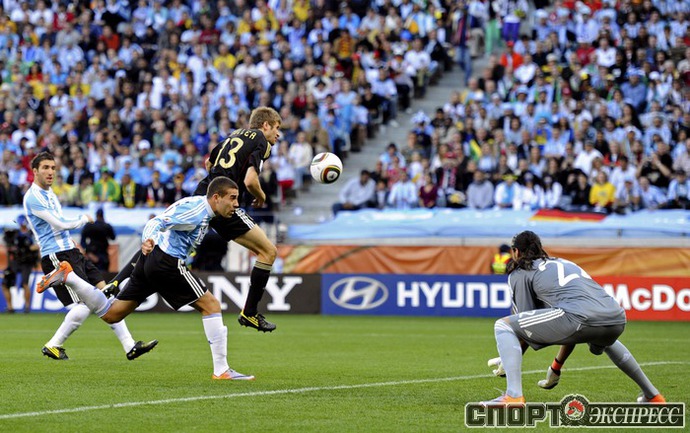 3 июля 2010 года. ЧМ-2010. ЮАР. Кейптаун. 1/4 финала. Аргентина - Германия - 0:4. Голы: Мюллер, 3 (0:1). Клозе, 68 (0:2). Фридрих, 74 (0:3). Клозе, 89 (0:4). Фото REUTERS