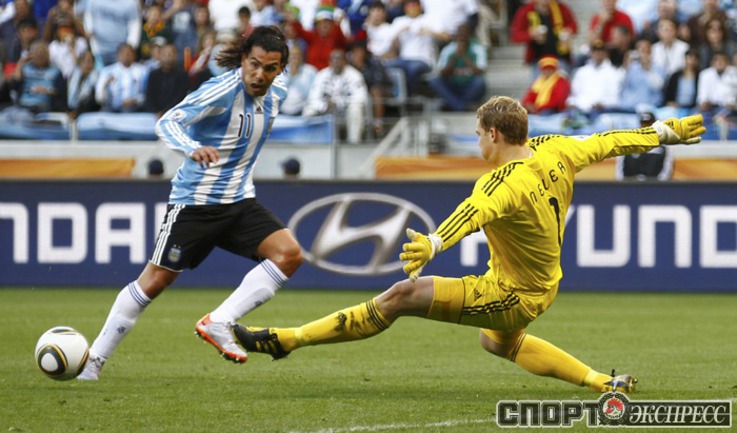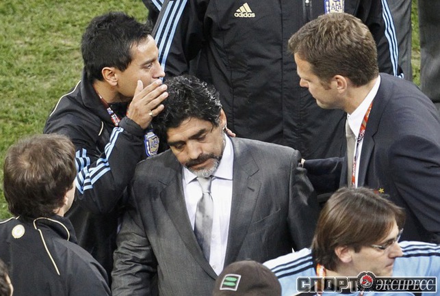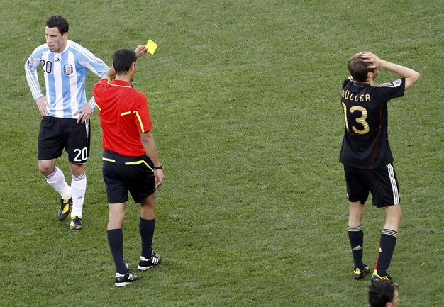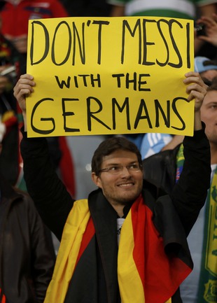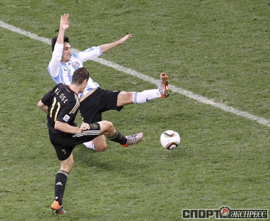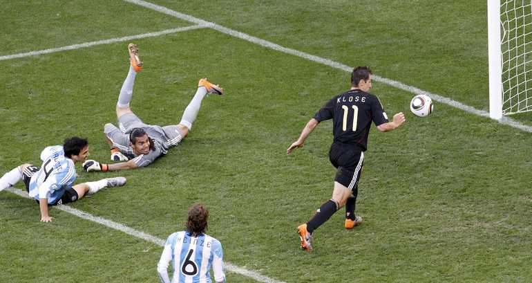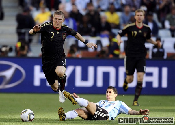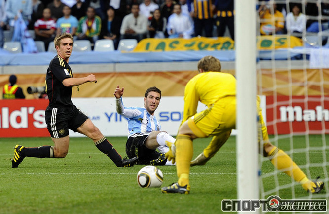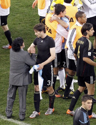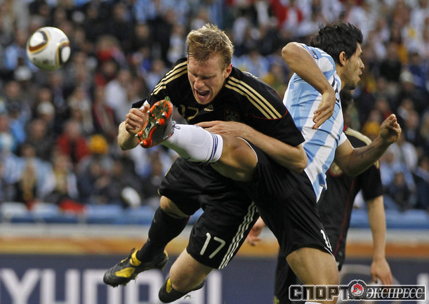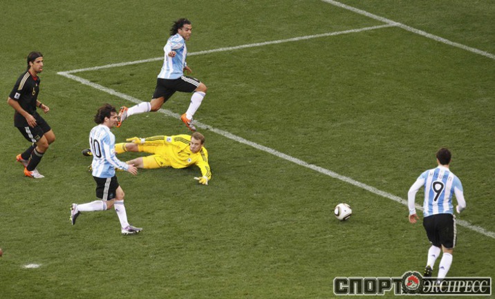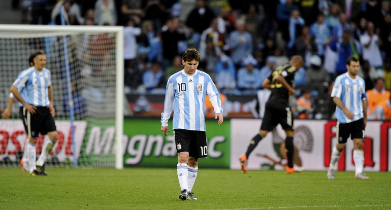 3 июля 2010 года. ЧМ-2010. ЮАР. Кейптаун. 1/4 финала. Аргентина - Германия - 0:4. Голы: Мюллер, 3 (0:1). Клозе, 68 (0:2). Фридрих, 74 (0:3). Клозе, 89 (0:4). Фото REUTERS
