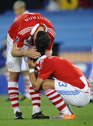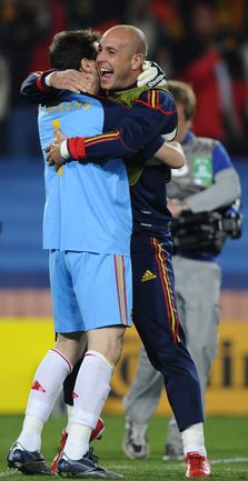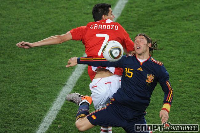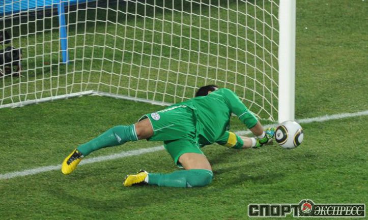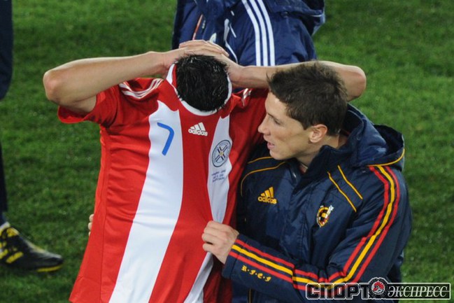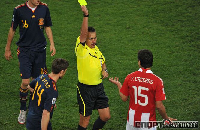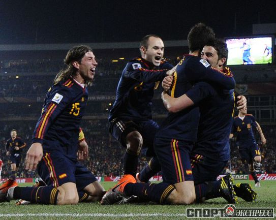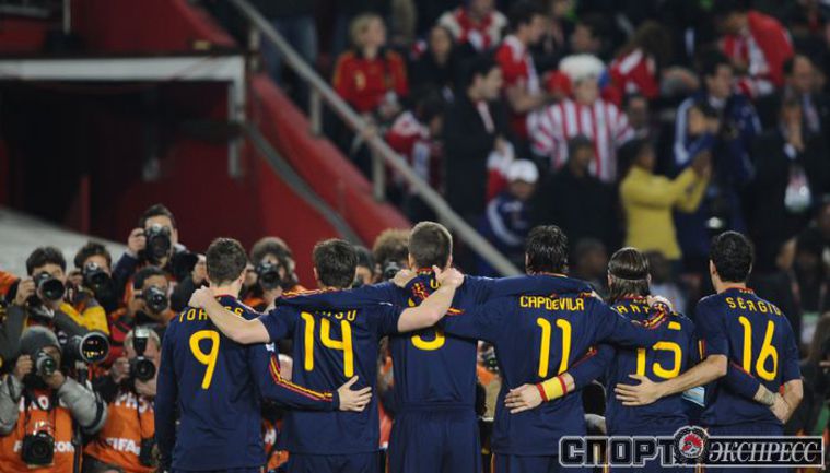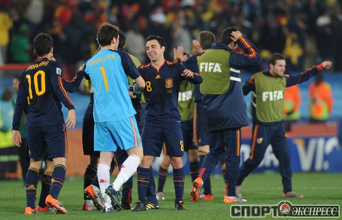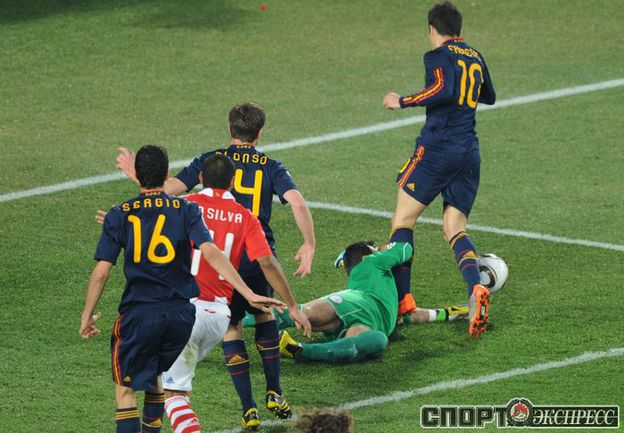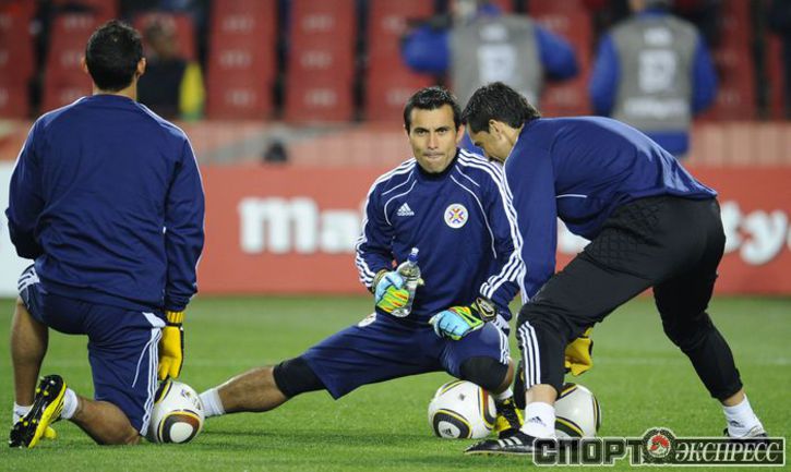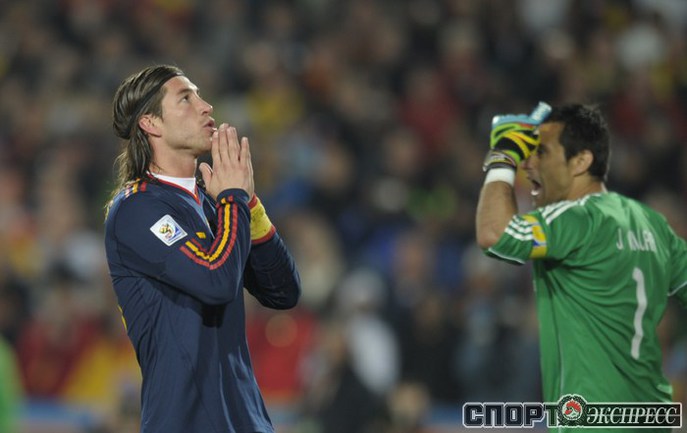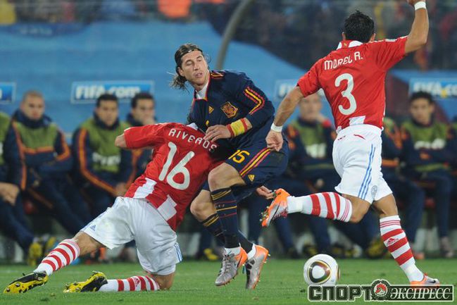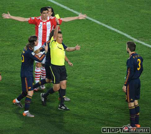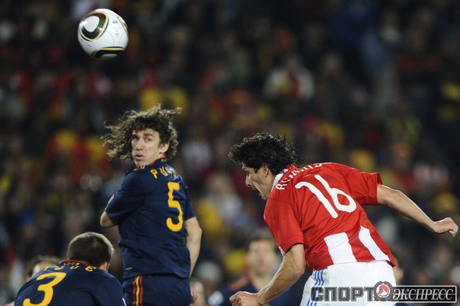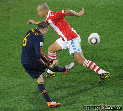 3 июля 2010 года. ЧМ-2010. ЮАР. Йоханнесбург. "Эллис Парк". 1/4 финала. Парагвай - Испания - 0:1. Гол: Вилья, 83. Нереализованные пенальти: Кардосо, 59 (вратарь), Хаби Алонсо, 62 (вратарь). Фото REUTERS, AFP