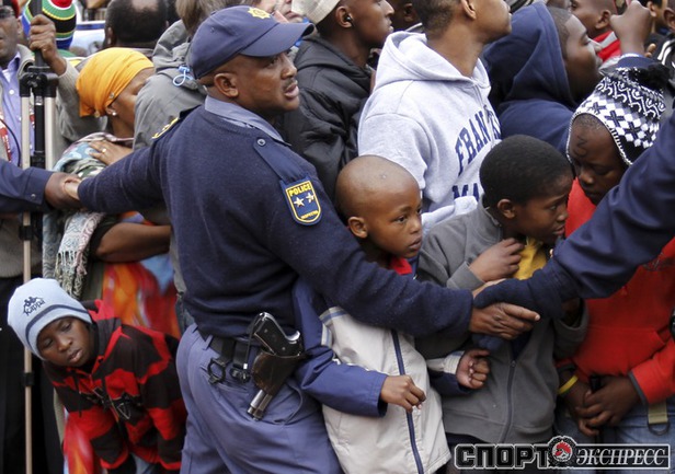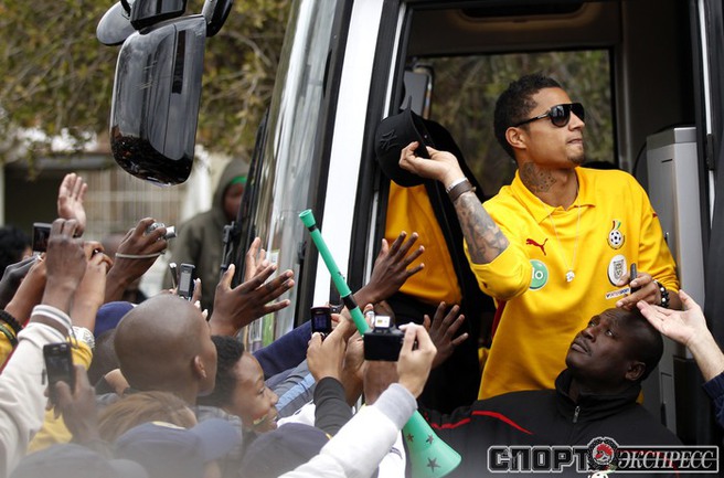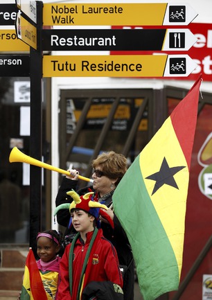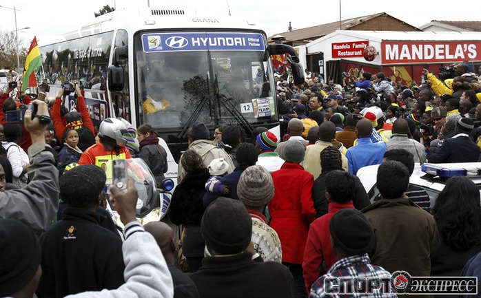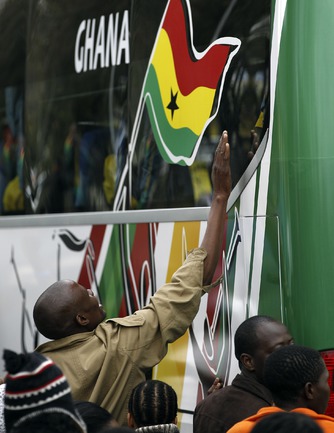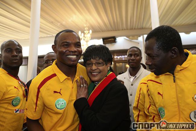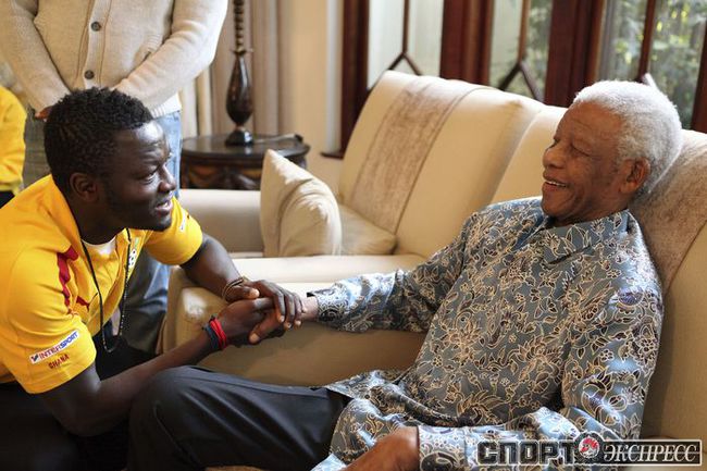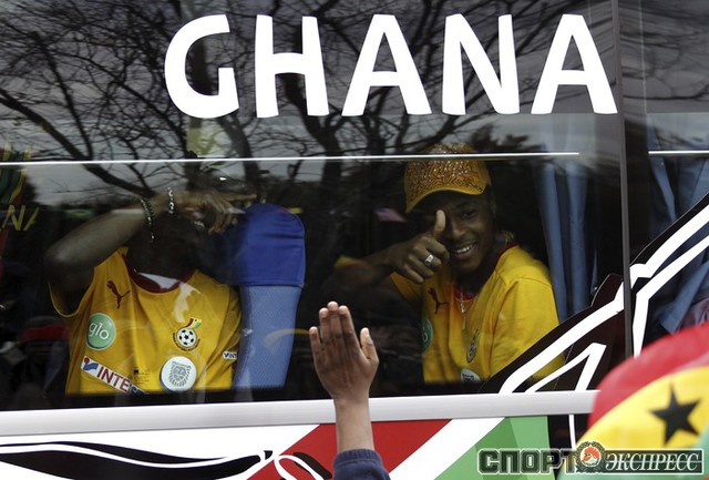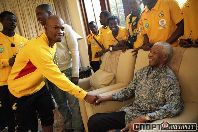 Из всех африканских команд-участниц ЧМ-2010 самой успешной стала сборная Ганы, лишь в серии послематчевых пенальти уступившая в четвертьфинале Уругваю. После обидного поражения ганских футболистов принял в своей резиденции первый президент ЮАР Нельсон Мандела, а затем с игроками тепло простились жители Соуэто, собравшиеся, чтобы проводить команду домой. Фото REUTERS