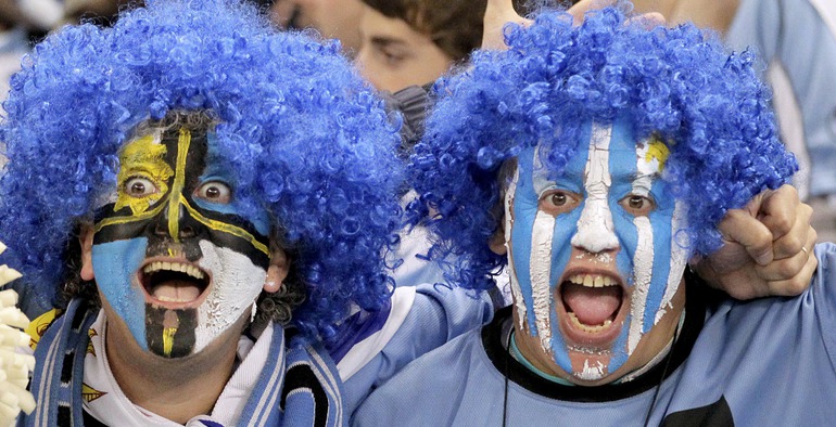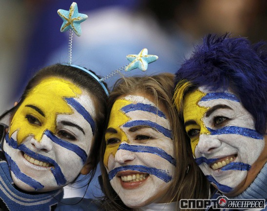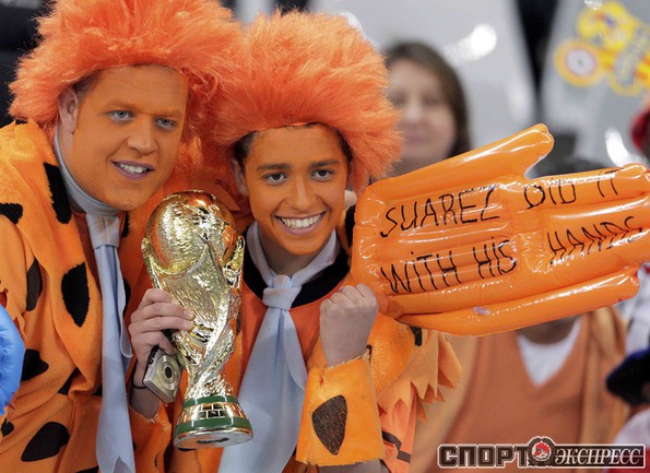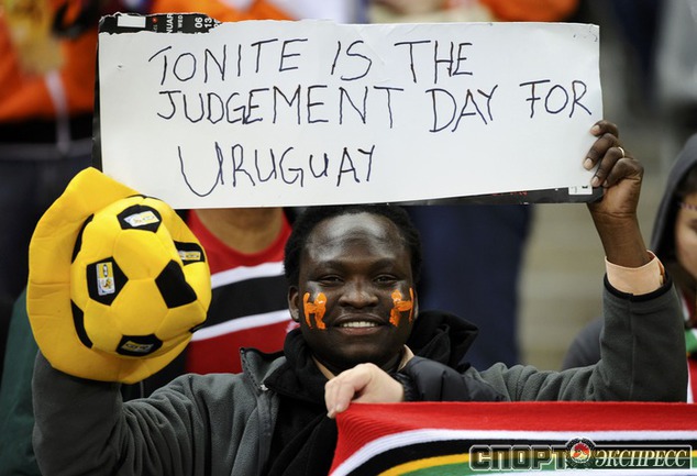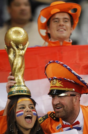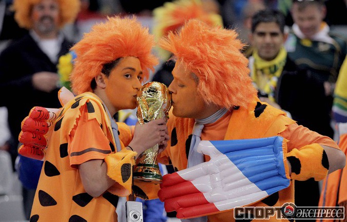 Чемпионат мира по футболу в ЮАР. Болельщики Голландии и Уругвая перед первым полуфинальным матчем ЧМ-2010. Фото REUTERS