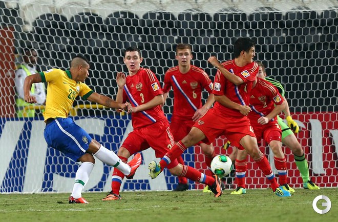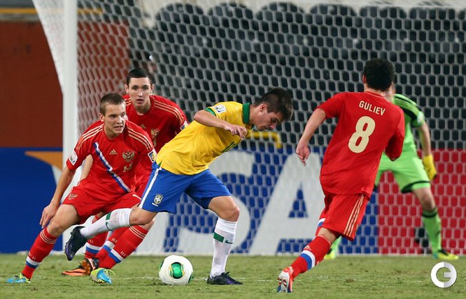 Футбол. ОАЭ. Чемпионат мира. Юношеские сборные (игроки не старше 17 лет). 1/8 финала. Бразилия – РОССИЯ – 3:1 (0:0). Голы: Москиту, 72 (1:0). Бошилиа, 79 (2:0). Макаров, 90+1 (2:1). Бошилиа, 90+3 (3:1). Удаление: Баринов, 69. Бразилия, переигравшая Россию (3:1) выйдет на поле в матче с действующим чемпионом мира Мексикой. Встреча состоятся 1 ноября. Фото AFP
