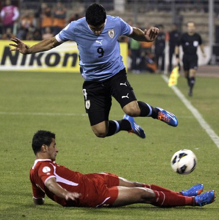 Чемпионат мира-2014. Отборочный турнир. Стыковые матчи. Иордания – Уругвай – 0:5 (0:2). Голы: Макси Перейра, 22 (0:1). Стуани, 42 (0:2). Лодейро, 69 (0:3). Кристиан Родригес, 78 (0:4). Кавани, 90+2 (0:5). Мексика – Новая Зеландия – 5:1 (2:0). Голы: Агилар, 32 (1:0). Хименес, 40 (2:0). Перальта, 48 (3:0). Перальта, 80 (4:0). Маркес, 84 (5:0). Джеймс, 85 (5:1). Фото AFP, REUTERS