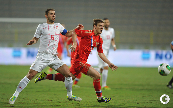 Футбол. Дубай. Товарищеский матч. РОССИЯ – Сербия – 1:1 (1:1). Голы: Самедов 30 (1:0). Джорджевич, 31 (1:1). Фото Александра ФЕДОРОВА, "СЭ"