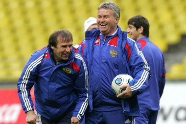 Погребняк: - Игроку обсуждать тренеров совсем не с руки. Могу сказать, что вся наша команда доверяет Гусу безгранично, а это всегда очень важно. Кстати, в немецкой прессе в последние дни о Хиддинке писали куда больше, чем о Леве.