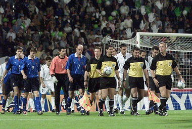 "Шла последняя минута, - вспоминает защитник нашей тогдашней сборной. - Словенцы подавали угловой. Побороться в штрафную пришел и рослый Милинович, за которым мне пришлось присматривать. Первым на мяче оказался нападающий Остерц. Он в борьбе с Ковтуном и нанес удар головой. Мимо. Мой подопечный, которого я, кстати, во время подачи даже не касался, сразу же рванул к своим воротам. Нигматуллин уже было собрался вводить мяч в игру - и тут раздался свисток Полла. Он сначала показал на меня, а затем - на одиннадцатиметровую отметку".