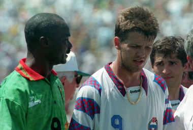 Еще одним дебютантом считалась Россия, впервые после развала СССР выставившая самостоятельную сборную. Проблем у команды Павла Садырина хватало. Письмо 14-ти стало проклятием того поколения, организационные проколы - бичом. В США россияне уступили будущим чемпионам и полуфиналистам - Бразилии и Швеции соответственно. К заключительному матчу с Камеруном они имели теоретические шансы оказаться одной из четырех счастливых сборных, которые проходили в плей-офф с третьего места своих групп (с увеличением числа участников в 1998-м этот принцип ушел в прошлое). Но ни один из вариантов не совпал.