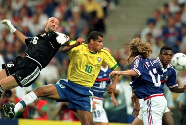 Творец успеха - Эме Жаке. Тренер принял сборную после ее провала в отборочном цикле предыдущего чемпионата мира. На английский Euro-1996 наставник повез обновленную команду, оставив за ее бортом признанных вожаков Эрика Кантона и Давида Жинола. Жаке не понимали и критиковали. А на домашнем мундиале его работа принесла золотые плоды. Выстроенная крепкая оборона и атака с дирижером Зинедином Зиданом. С таким рецептом французы добились небывалого успеха. В финале не помешала даже дисквалификация Лорана Блана (в лучших моментах того турнира всегда находилось место кадру с поцелуем высоченного защитника в лысину голкипера Фабьена Бартеза). Дубль Зидана, дважды замыкавшего подачи угловых в середине первого тайма и в его компенсированное время, третий выстрел от Эммануэля Пети уже по ходу второй половины, никакого ответа с другой стороны - и Париж сошел с ума. С другой стороны, была боль Роналдо, который из-за инцидента накануне решающего поединка (много писали о загадочном припадке) не был похож на самого себя.