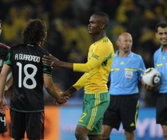 Нельзя сказать, что футболисты "Бафана Бафана" оказались уж совсем "прижаты к канатам", но наверняка они и сами не будут спорить, что стартовая половина первого тайма им не удалась. Ведь едва 45-минутка перевалила свой экватор, оказалось, что играть команда, находящаяся в конце первой сотни рейтинга ФИФА, умеет. Южноафриканцы старались проводить скоростные атаки с передачами в касание, и было видно, что разбегающиеся по всему фронту нападения игроки знают свой маневр, да вот только точной заключительной передачи не хватало. И два следующих голевых момента снова были в активе мексиканцев – после заброса-черпачка в исполнении Велы Франко не сумел в ближнем бою переиграть голкипера, а затем Дос Сантос не попал в ворота с близкого расстояния – мяч рикошетом от защитника улетел за лицевую. "Трехцветные" подали серию угловых, и один из них закончился взятием ворот. Куне ошибся на выходе, и после серии отскоков мяч прилетел к находящемуся практически у линии Веле. Форвард "Арсенала" не мог промахнуться и уже бежал праздновать гол, когда заметил, что поднят флаг бокового арбитра. Офсайд.
