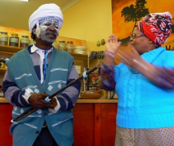 Мы с вами в школе обучения колдовскому искусству. Если хотите, в академии общения с потусторонними силами, духами предков, которые, как верят в Африке, направляют жизнь на земле. Чтобы они не гневались и не насылали несчастья, к ним надо проявлять почтение, а для этого соблюдать ритуалы и приносить животных в жертву. При этом выглядеть сангомы должны привлекательно (не для живых, а для усопших), потому в ходу у них яркие одеяния.