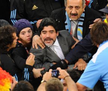 Тем временем медиаофицер ФИФА раз пять предупредил, что фотографировать тренеров (относилось все, впрочем, только к одному, поскольку других и не пытались) категорически запрещено. Как и днем ранее, после пресс-конференции Марадону увели моментально - чтобы ему не пришлось раздавать журналистам автографы. Хотя стремились к этому, знаю, многие...