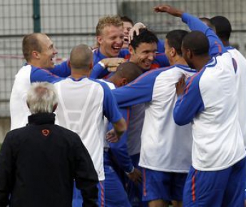 На предматчевой пресс-конференции главный тренер голландцев держался уверенно, говорил четко и отрывисто. Ван Марвейк совсем не похож на философа Гуса Хиддинка, это закоренелый практик. Что не помешало первому повторить успех второго, вышедшего с Голландией в полуфинал ЧМ-98. Но он хочет большего.