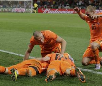 На чемпионате мира будет европейский финал. Это стало известно после того, как сборная Голландии переиграла сборную Уругвая. В первом тайме подопечные Берта ван Марвейка смотрелись предпочтительнее и первыми забили. Гол получился на заглядение, хоть и оказался немного неожиданным - капитан "Оранжевых" ван Бронкхорст точным ударом метров с 30-ти отправил мяч в дальнюю от себя "девятку". До перерыва уругвайцы ответили почти таким же дальним ударом Форлана, который стал неприятной неожиданностью для Стекеленбурга.