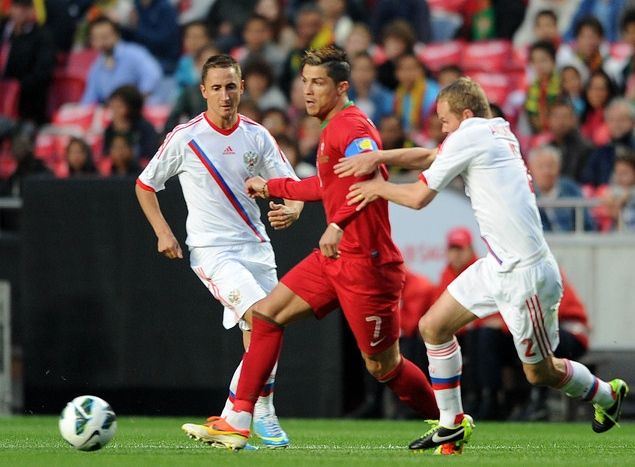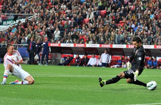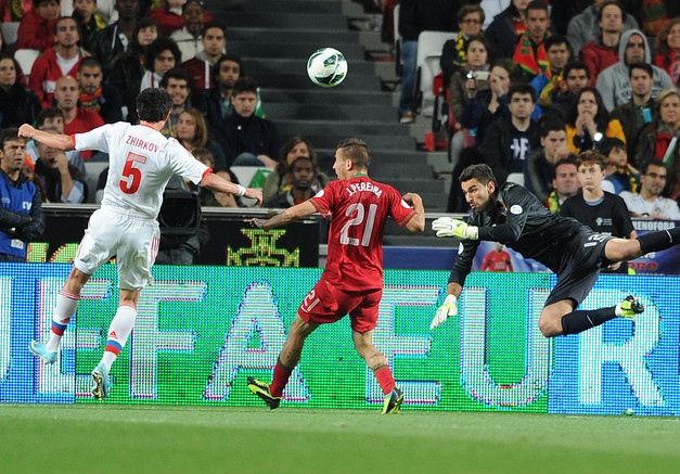 В Москве команда Капелло повела после быстрого гола стараниями Файзулина, Широкова и Кержакова, а потом терпела, терпела и вытерпела. В Лиссабоне португальцы со своим напором организовали ранний мяч, после чего могли "углубить и расширить", тогда как гости имели возможность отменить чужую победу. Осталось жалеть, что в дебюте поединка на "Да Луж" прервалась не та серия россиян. Голевому молчанию Кержакова завершиться, увы, снова было не суждено. Закончилась рекордная для национальной команды сухая серия Акинфеева. Фол Широкова на Роналду и подача Велозу, Березуцкий с Широковым бросились за Роналду, Комбаров отпустил Нету с Поштигой – нападающий с близкого расстояния переправил мяч в ворота с отскоком от штанги.