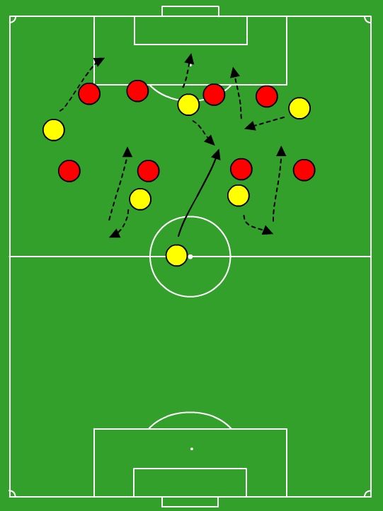 Но даже если форвард берет верх только в половине единоборств – не беда. Главное – выигрывать их как можно ближе к чужой штрафной (глубокая игра линии обороны позволит нам это сделать) и постоянно увеличивать количество единоборств (согласитесь, есть разница – выиграть 3 из 6 или 10 из 20). Артем берет свое прежде всего за счет количества.
