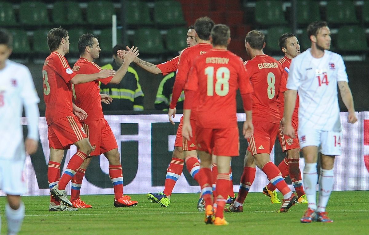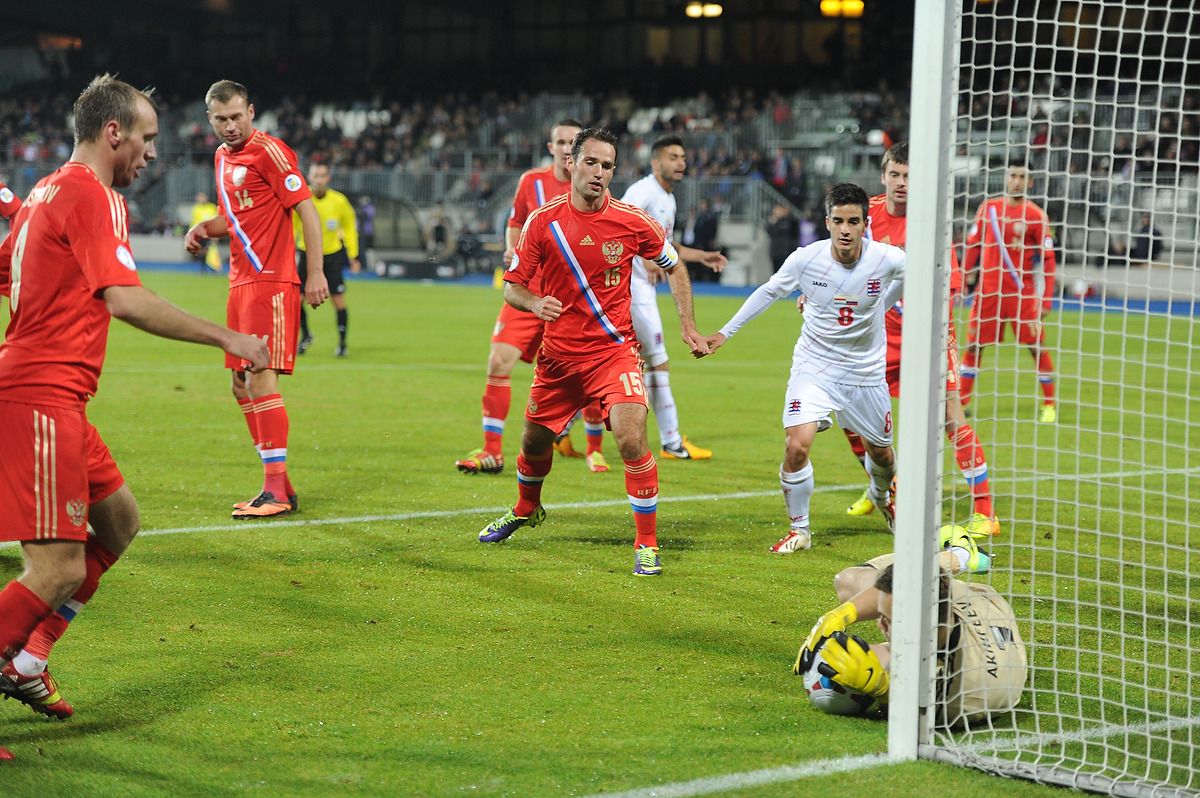 Россия: Акинфеев, Козлов, Гранат, В.Березуцкий, Комбаров (Щенников, 86), Глушаков, Кокорин (Жирков, 46, Быстров, 65), Файзулин, Широков, Самедов, Кержаков.