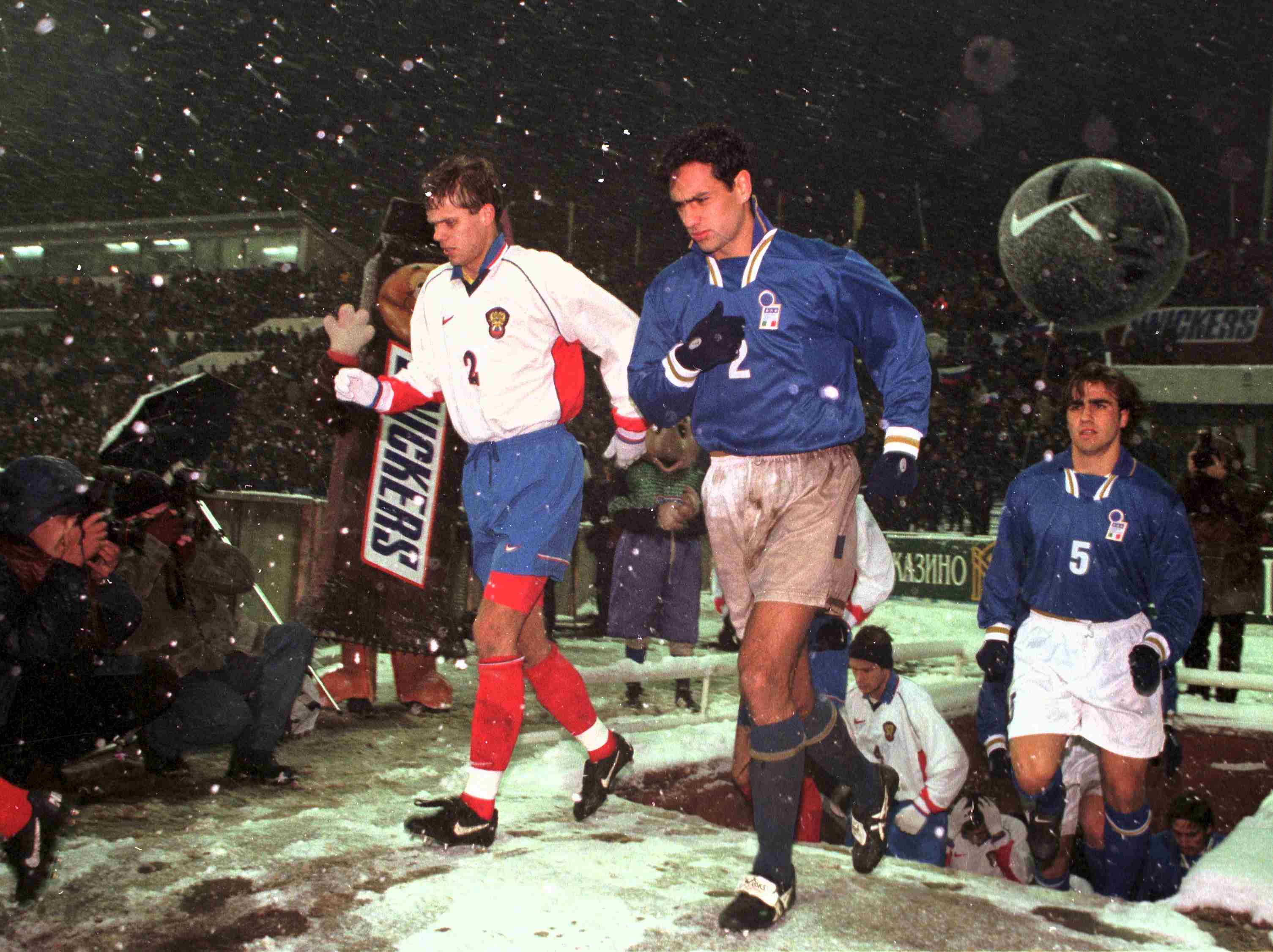 Первый в ее истории "стык" вышел сборной России боком. При том, что для прохода итальянцев необходимо было добиться весьма результативной ничьей (2:2). Как выяснилось, об этом не было и речи: за 180 минут наша команда вообще не забила ни одного гола. В Москве, правда, помог Фабио Каннаваро, отправивший мяч в собственные ворота. А вот в Неаполе все решил гол в исполнении Пьерлуиджи Казираги. Правда, сам герой матча, завоевав для Италию путевку на ЧМ-1998, на этот турнир не попал. А вскоре и вовсе завершил карьеру за национальную сборную.