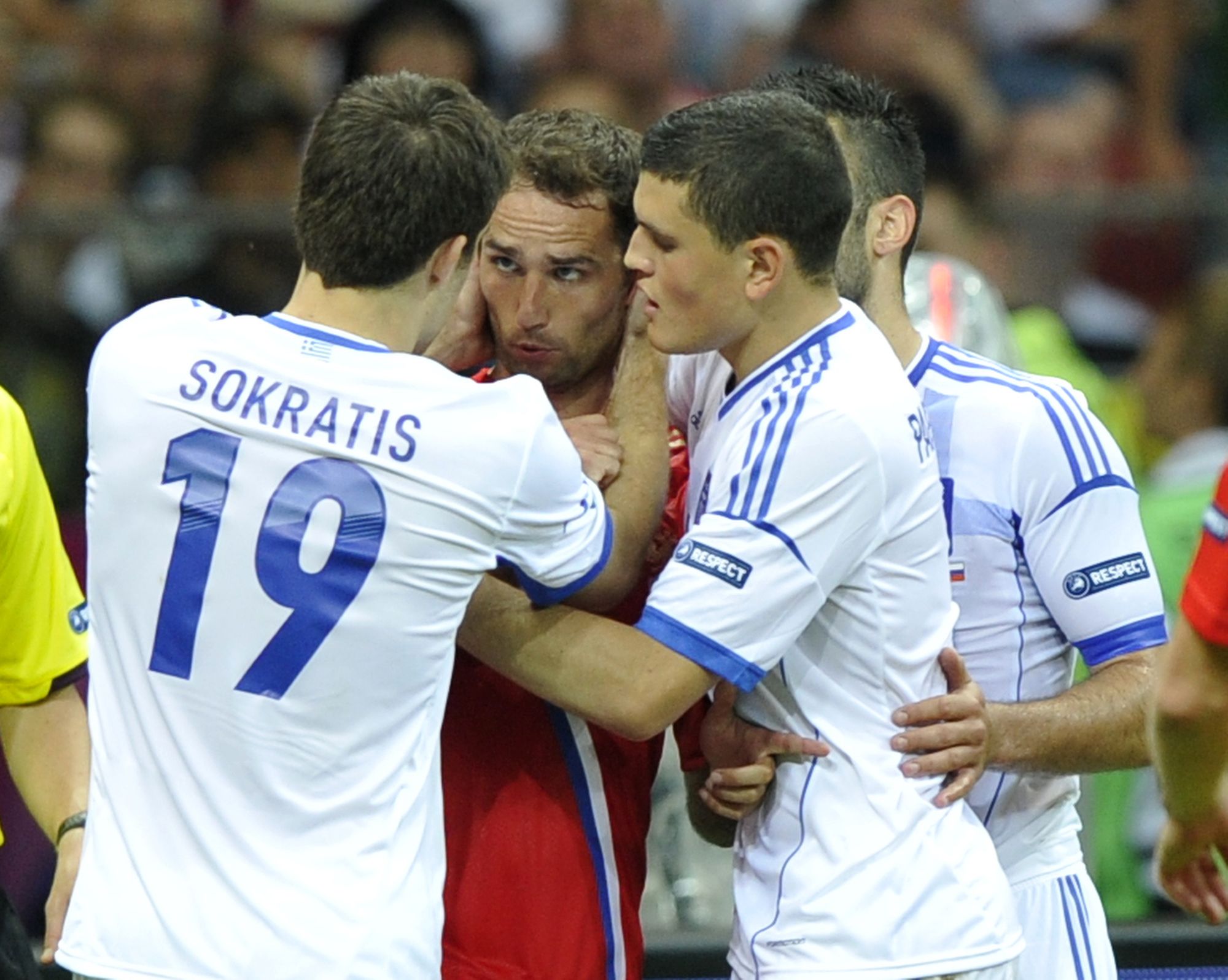 История 10-летней давности повторилась полностью! Если ради попадания на ЧЕ-2012 (как и на ЧМ-2002) россияне вместо ничьих добились разгромных побед, то в финальных турнирах, когда для выхода в плей-офф хватало ничейного шага, сделать его не удавалось. При том, что в Польше Россия после двух туров занимала 1-е место, опережая по очкам (у нее их было 4) всех преследователей – Чехию (3), Польшу (2) и Грецию (1). Но чехи обыграли хозяев турнира, а грекам наша команда уступила сама. А похоронил россиян перед самым свистком на перерыв (шла вторая компенсированная минута) 35-летний Гиоргос Карагунис.