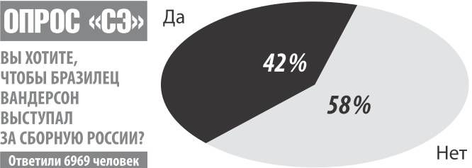 – Вандерсону уже 28 лет, он состоявшийся футболист, – рассуждает Газзаев. – Считаю его одним из сильнейших форвардов чемпионата России. Если он изъявил желание выступать за нашу сборную, то почему бы и нет? Сейчас идет процесс глобализации. Возьмите для примера сборную Франции. Разве там не хватает натурализованных футболистов? Вандерсон – забивной форвард. Главное, чтобы у него было огромное желание выступать за нашу национальную команду. Мне кажется, оно у него есть.