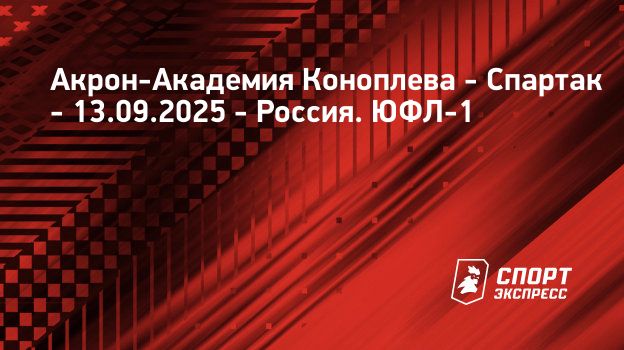 "СЭ" рад приветствовать всех любителей футбола! Здесь вас ждет онлайн-трансляция матча Акрон-Академия Коноплева (Самарская область) – Спартак (Москва). Россия. ЮФЛ-1, 22-й тур Матч пройдет 13 сентября 2025 года на стадионе Академии футбола им. Юрия Коноплева (Приморский, Россия). Начало - в 15:00 по московскому времени.