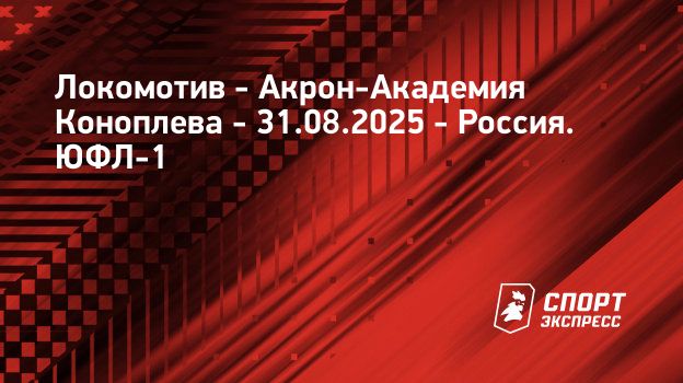 "СЭ" рад приветствовать всех любителей футбола! Здесь вас ждет онлайн-трансляция матча Локомотив (Москва) – Акрон-Академия Коноплева (Самарская область). Россия. ЮФЛ-1, 21-й тур Матч пройдет 31 августа 2025 года на стадионе Сапсан Арена (Москва, Россия). Начало - в 17:00 по московскому времени.