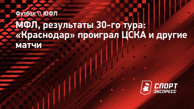 МФЛ, результаты 30-го тура: «Краснодар» проиграл ЦСКА и другие матчи