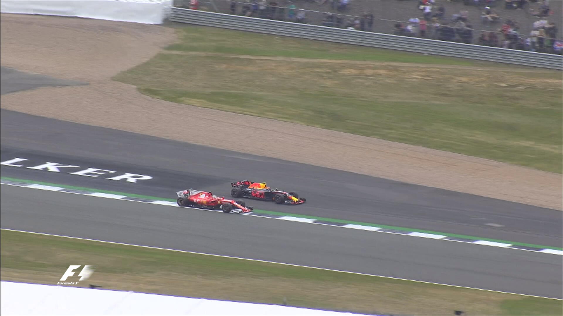 Феттель обходит Ферстаппена, но в следующем повороте Макс возвращает себе третью позицию.