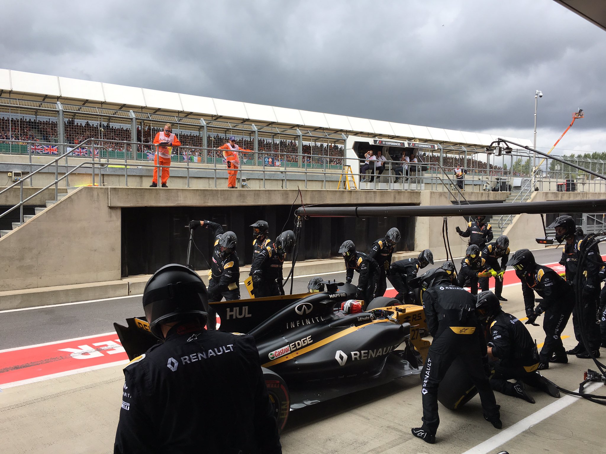 Хюлькенберг тоже в боксах, а Стролл обходит Квята. Россиян последний.