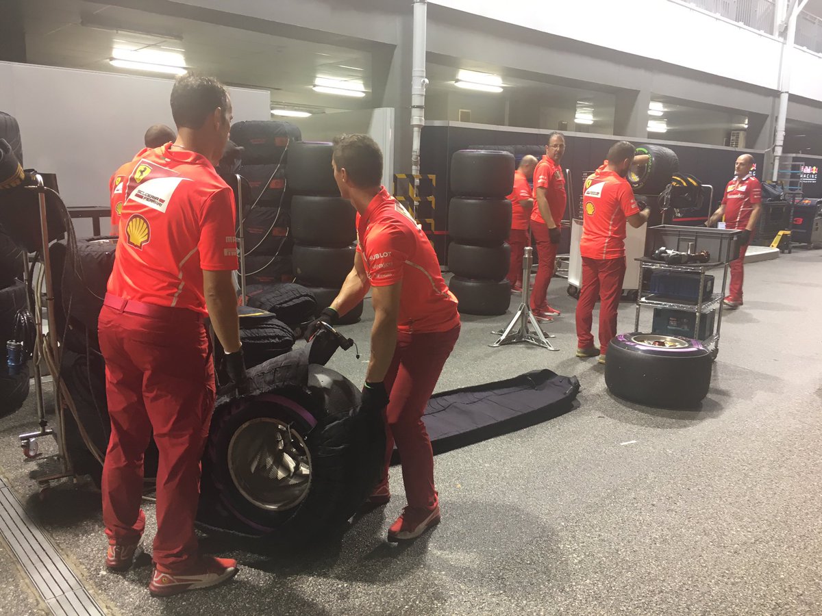 19-й круг. "Феррари", тем временем, уже собирает вещи. В Сингапуре борьба для итальянской команды закончена. А ведь такой важный этап с точки зрения борьбы с "Мерседесом".