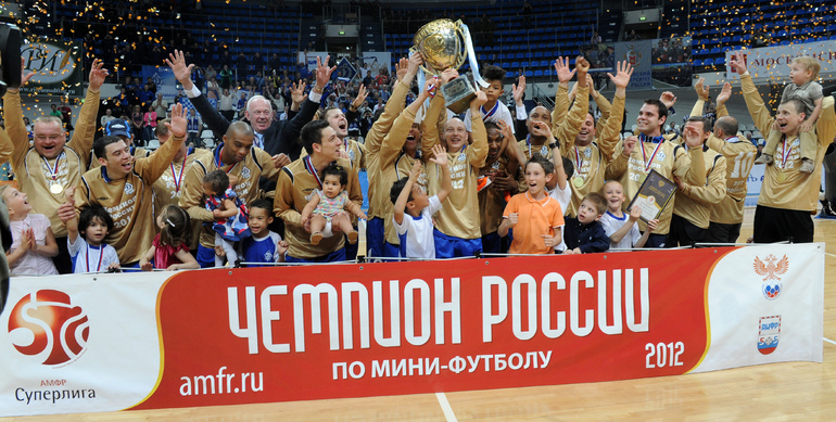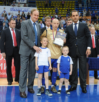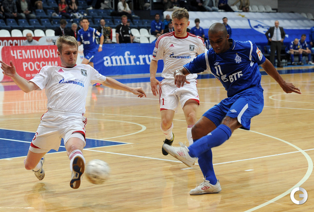 Минифутбол. Чемпионат России. Мужчины. Финал. Третий матч. "Динамо" (Москва) - "Сибиряк" (Новосибирск) - 8:4 (3:3). Голы: Умберто, 7 (0:1). Сирило, 9 (1:1). Иванов, 10 (1:2). Фернандиньо, 17 (2:2). Фернандиньо, 18 (3:2). Умберто, 21 (3:3). Шаяхметов, 31 (4:3). Нандо, 36 (5:3). Иванов, 37 (5:4). Фернандиньо, 46 (6:4). Фернандиньо, 48 (7:4). Фернандиньо, 50 (8:4). Счет в серии: 3-0 (5:2, 5:1). Фото - Никита УСПЕНСКИЙ, "СЭ"