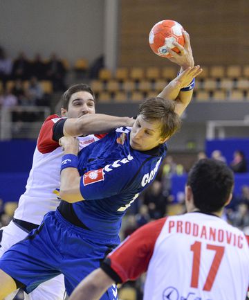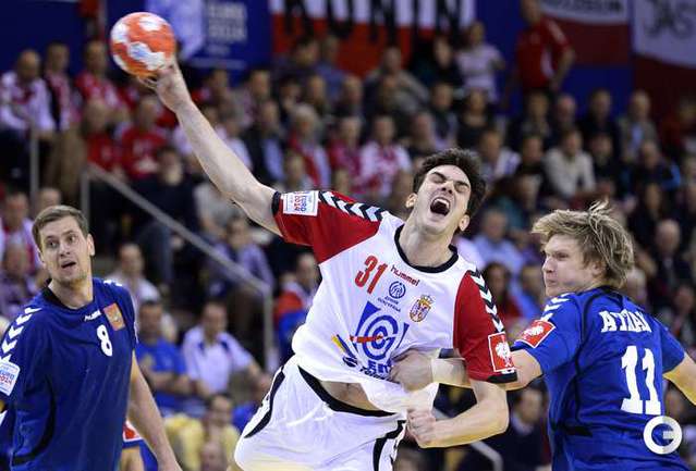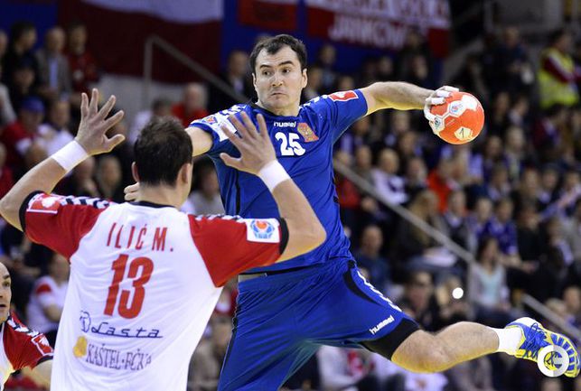 Гандбол. Орхус. Чемпионат Европы. Мужчины. 1-й групповой турнир. 2-й тур. Группа C. РОССИЯ - Сербия - 27:25 (14:14). Во втором матче на мужском чемпионате Европы по гандболу сборная России обыграла Сербию - 27:25. Это первая победа для россиян на турнире. В заключительном поединке первого этапа 17 января они встретятся с Польшей. Во второй групповой турнир выходят три лучшие команды из каждой четверки. Фото AFP