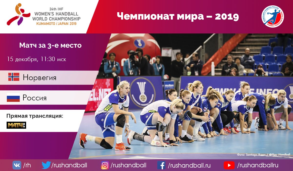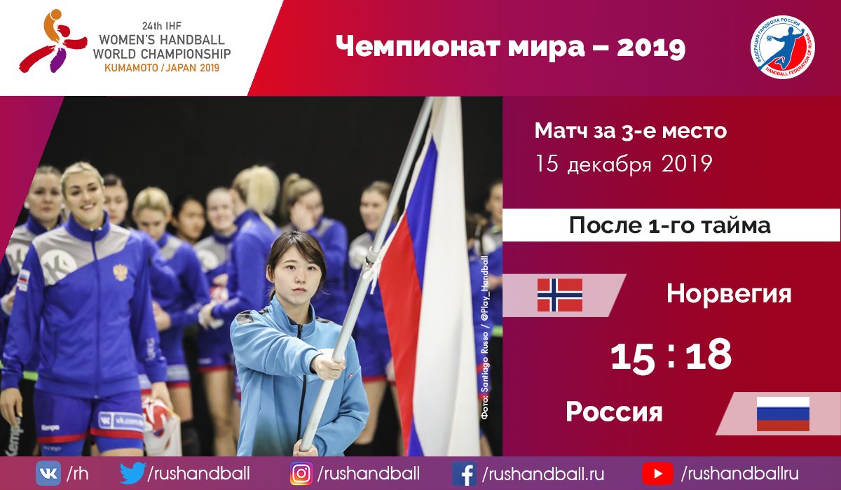 Все, сборная России - бронзовый призер чемпионата мира! 33:28! Подопечные Амброса Мартина берут реванш у Норвегии за разгромное поражение два года назад и везут домой награды. Конечно, учитывая, как россиянки играли, все мы ждали чего-то большего. На турнире наши девчонки проиграли лишь один матч с разницей в один мяч... Но это спорт, так бывает, давайте же просто поблагодарим сборную за этот успех. На этом все, спасибо, что на протяжении чемпионата мира следили за турниром вместе с нами!