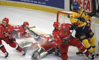 Голы: Мозякин (Кутейкин, Сушинский), 16:57 (0:1 - бол.). Виделл (Мортенссон), 21:31 (1:1 - бол.). Кулемин (Михнов, Счастливый), 32:17 (1:2). Мозякин (Курьянов, Сушинский), 45:01 (1:3). Хорнквист (Экман, Юханссон), 46:15 (2:3). Вайнхандль (Виделл, Юнланд), 46:39 (3:3). Платонов (Михнов), 51:40 (3:4). |