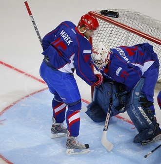 Однако буквально в следующей атаке голкипер сборной России был вынужден капитулировать. Марек в большинстве ворвался в зону "Салавата", где поочередно обыграл Терещенко и Прошкина, после чего послал шайбу в ворота мимо Маккарти и Еременко. Но тут на помощь чемпионам России пришел линейный судья, который зафиксировал довольно спорный офсайд. На этом команды отложили выяснение отношений на второй период, ставший более богатым на события. |