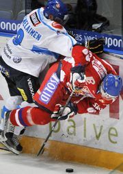 Голы: Беднарж (Червенка, Ролинек), 0:57 (0:1). Мяенпя (Анттила, Комаров), 8:49 (1:1). Салмелайнен (Иммонен), 44:38 (2:1).