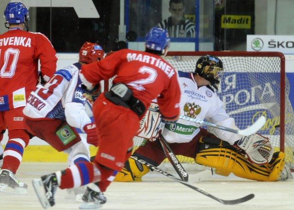 Голы: Мартинек (Червенка, Ягр), 19:03 (1:0 - бол.). Тарасенко (Горовиков), 22:04 (1:1). Мартинек (Ягр), 24:17 (2:1 - бол.). Червенка (Ягр, Пруха), 24:45 (3:1 - бол.). Морозов (Никулин), 29:10 (3:2). Ворачек (Марек), 34:34 (4:2). Новотны (Ворачек), 50:23 (5:2 - мен.). Гребешков, 52:54 (5:3). Ягр, 53:31 (6:3).