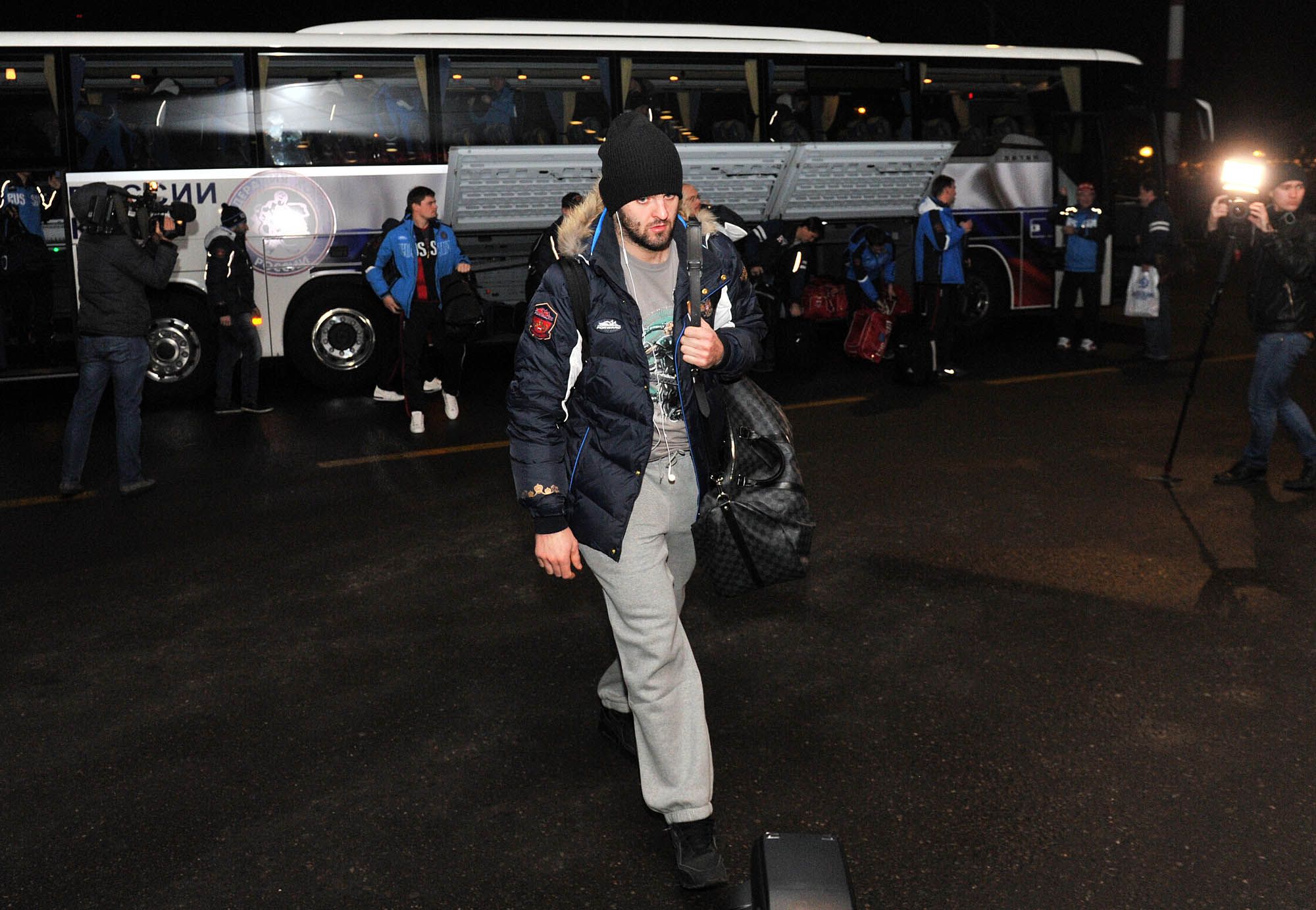 Автобус сборной России, несмотря на то что выехал с базы в Новогорске в дуэте с машиной сопровождения ДПС, на полчаса опоздал.