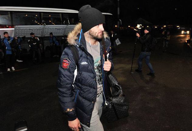 Автобус сборной России, несмотря на то что выехал с базы в Новогорске в дуэте с машиной сопровождения ДПС, на полчаса опоздал.