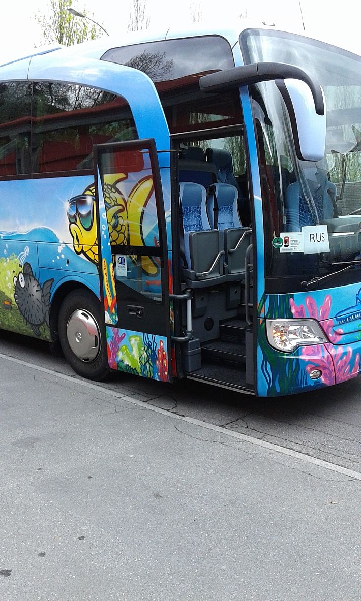 Автобусная тема, похоже, набьет оскомину, ибо организаторы горазды на все новые и новые неожиданности. Сегодня забирать команду на игру с Германией приехал автобус, разукрашенный героями из диснеевского мультика "В поисках Немо".